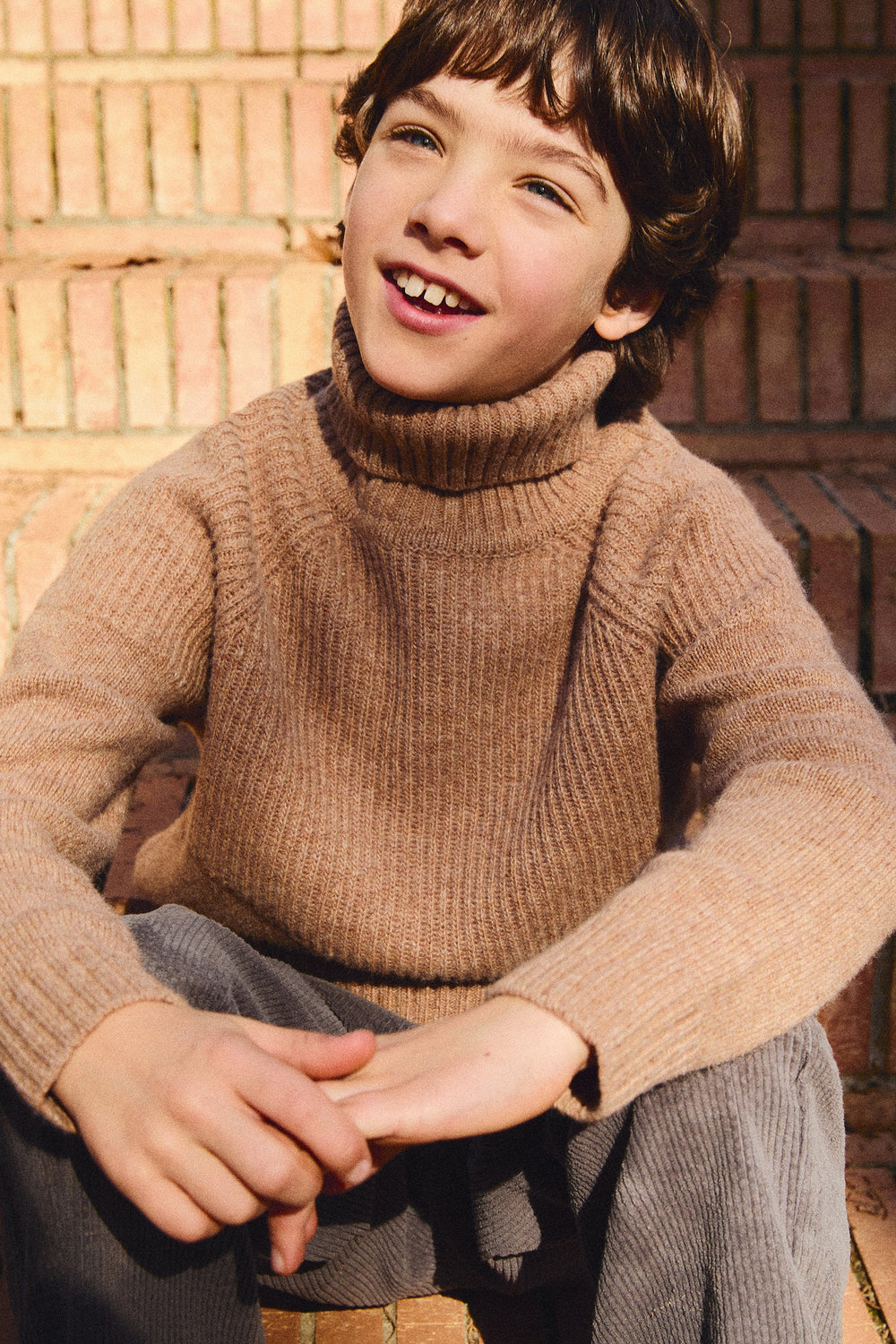 Sweater made of wool and polyamide blend. Regular fit. High round neck. Long sleeves. Embroidered skull detail at the bottom. Ribbed trim.