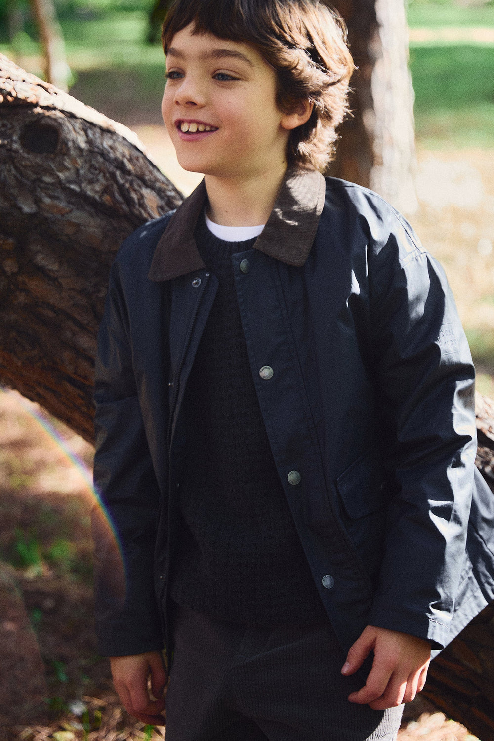 Jacket made of a technical fabric. Contrast shirt collar. Regular Fit. Button fastening. Front button-up pockets. Long sleeves.