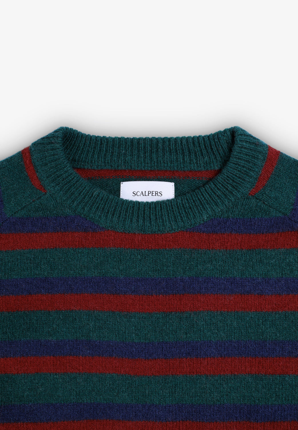 Pullover aus recyceltem Wollgemisch. Rundausschnitt. Streifen-Print Lange Ärmel. Patentbündchen am Saum.
