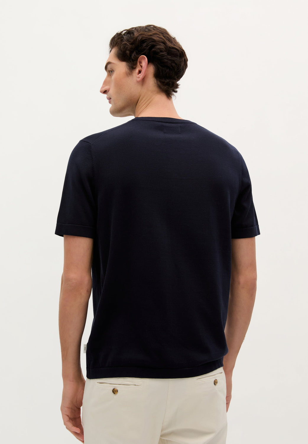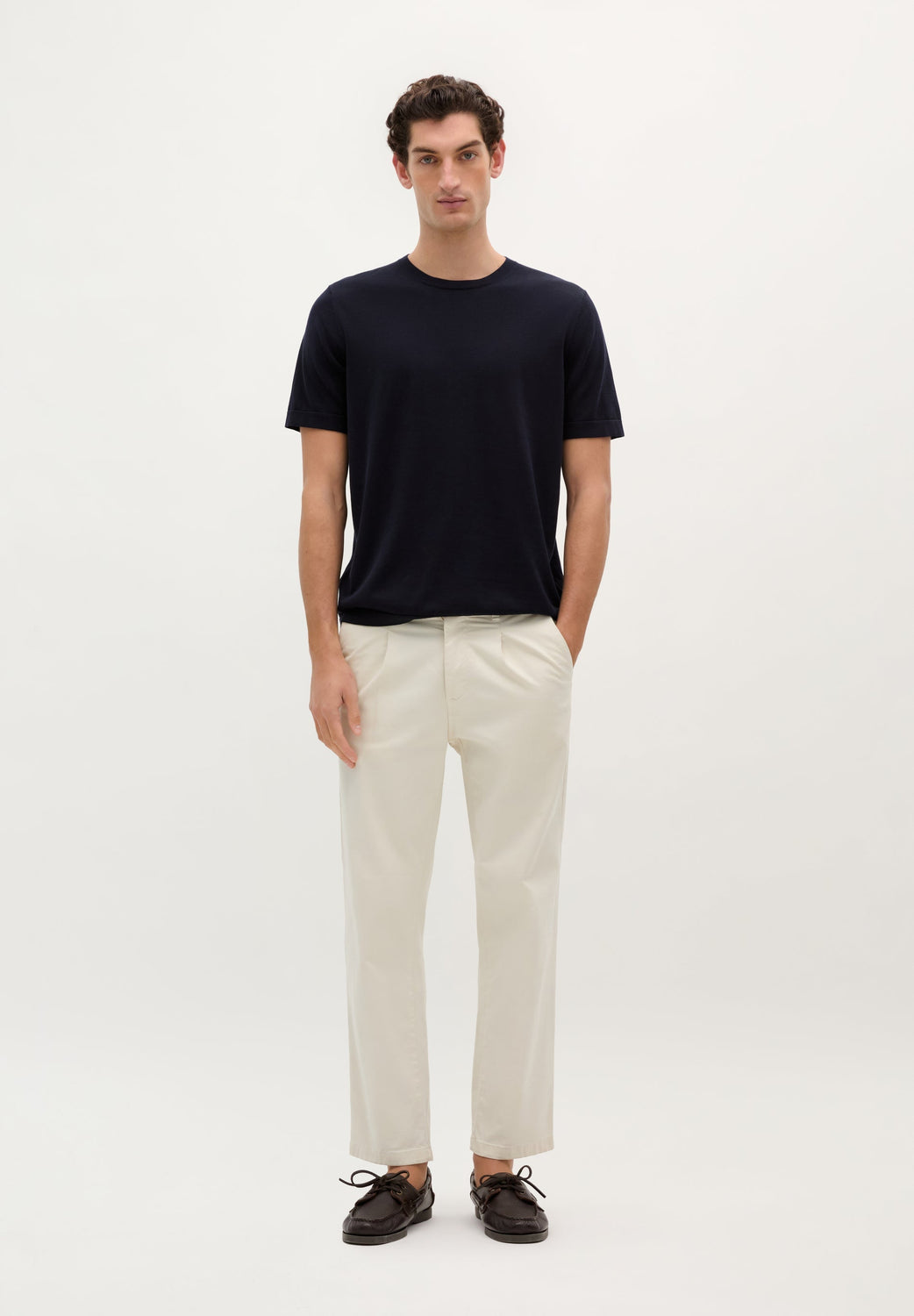 T-Shirt aus Baumwolle, Leinen und Seide. Regular Fit. Kurze Ärmel. Patentmuster am Ausschnitt-Saum.