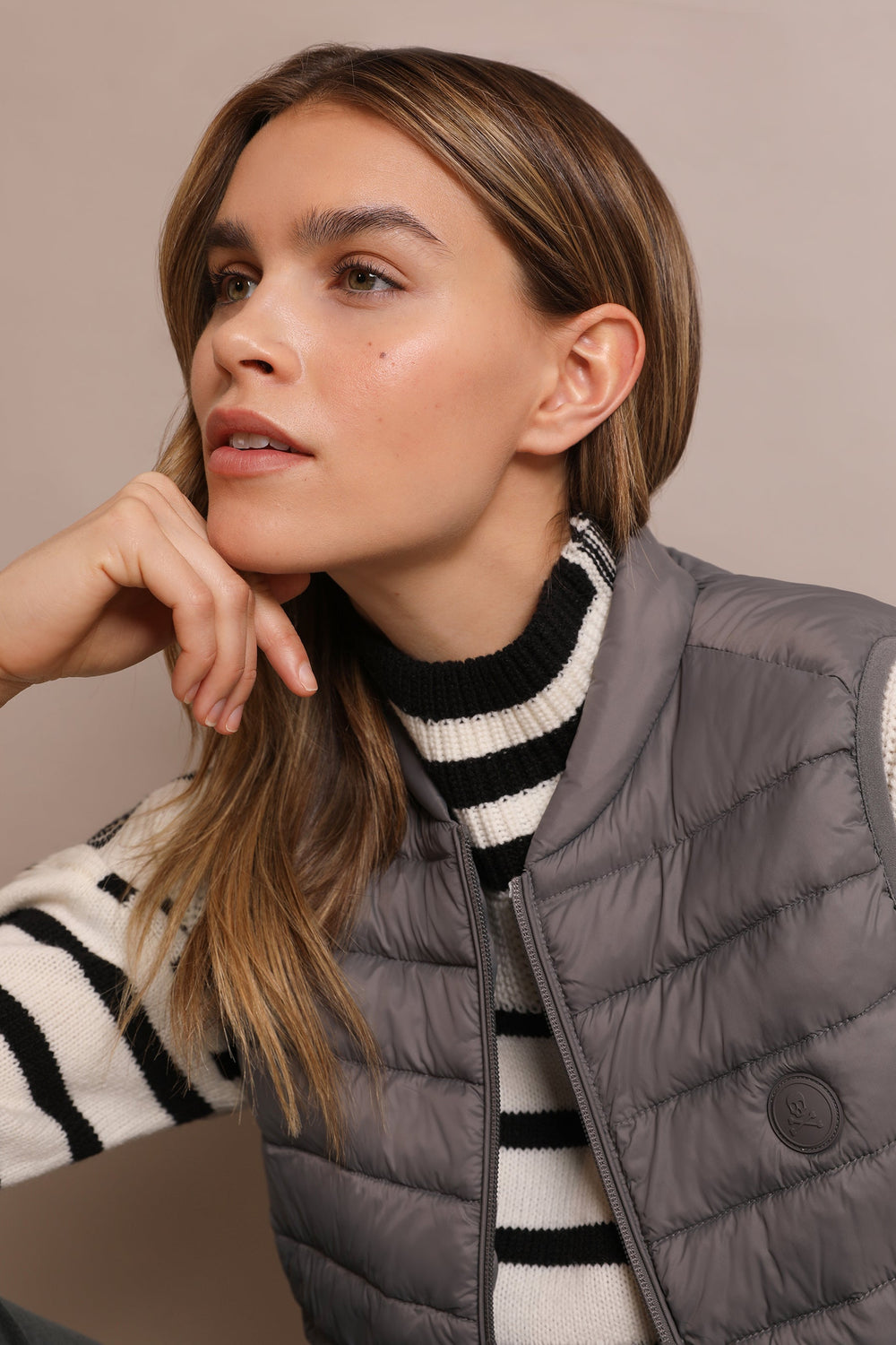 Quilted gilet with a skull detail. Made of nylon, regular fit, high collar, zip fastening and zipped pockets.