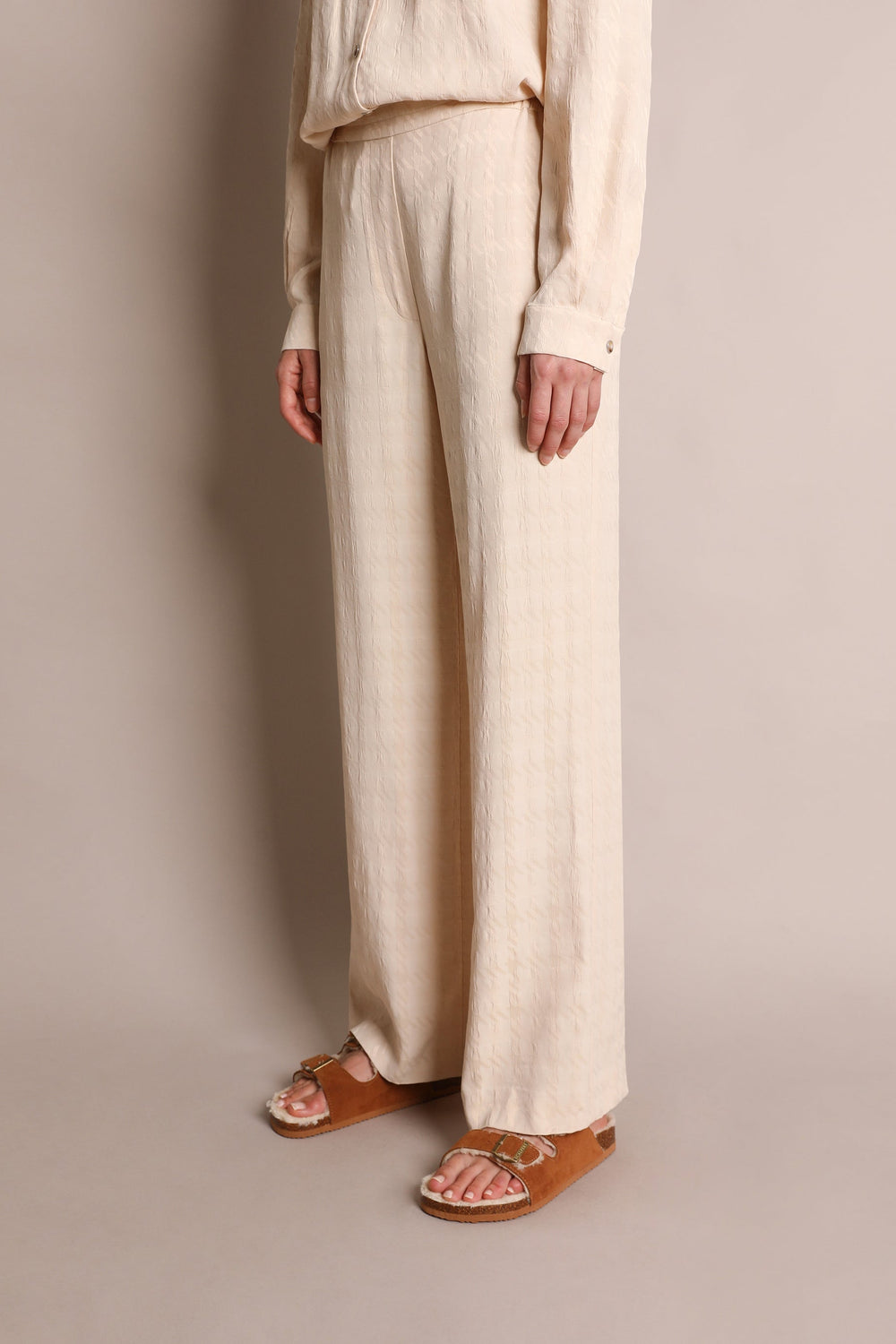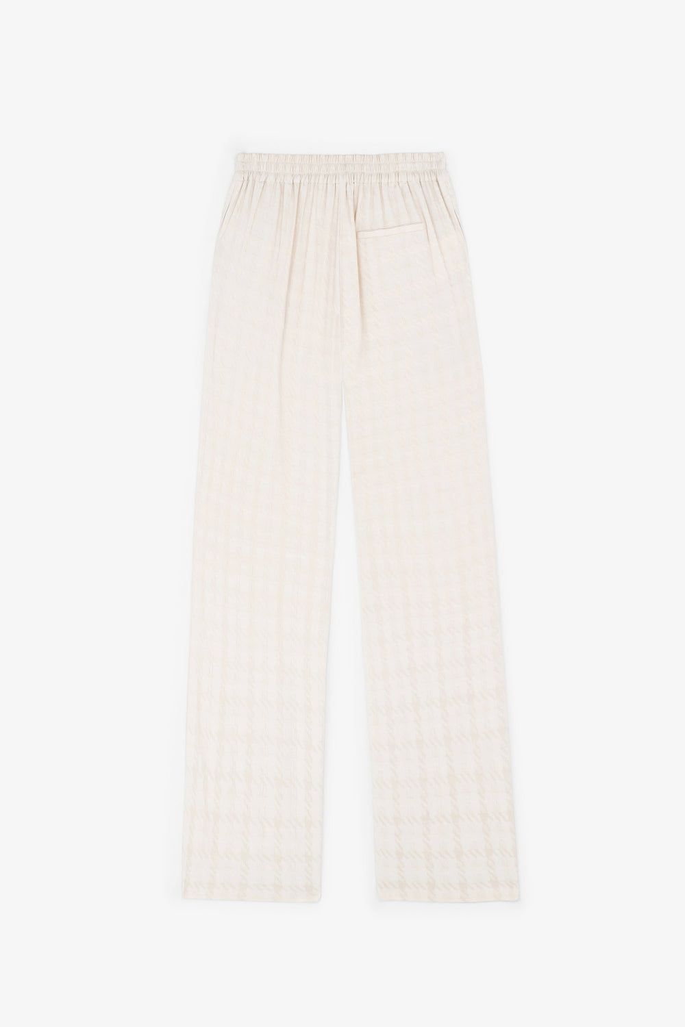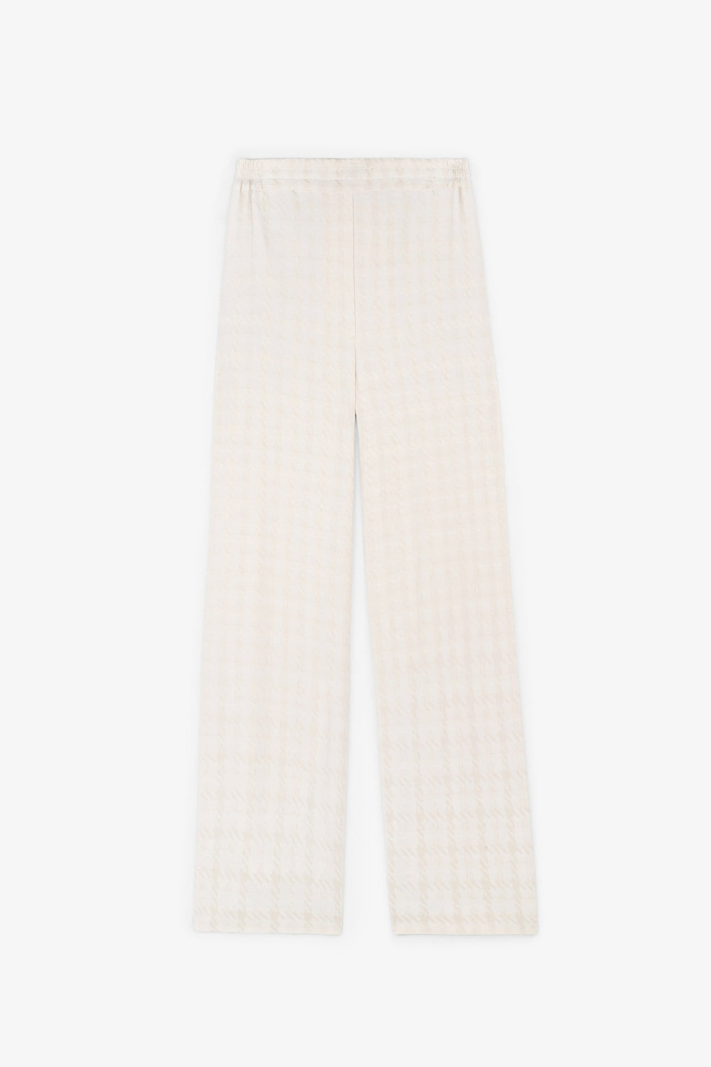 Jacquard trousers made from loose-fitting fabric. Flared, regular fit with an elasticated waistband at the back. Side zip fastening.