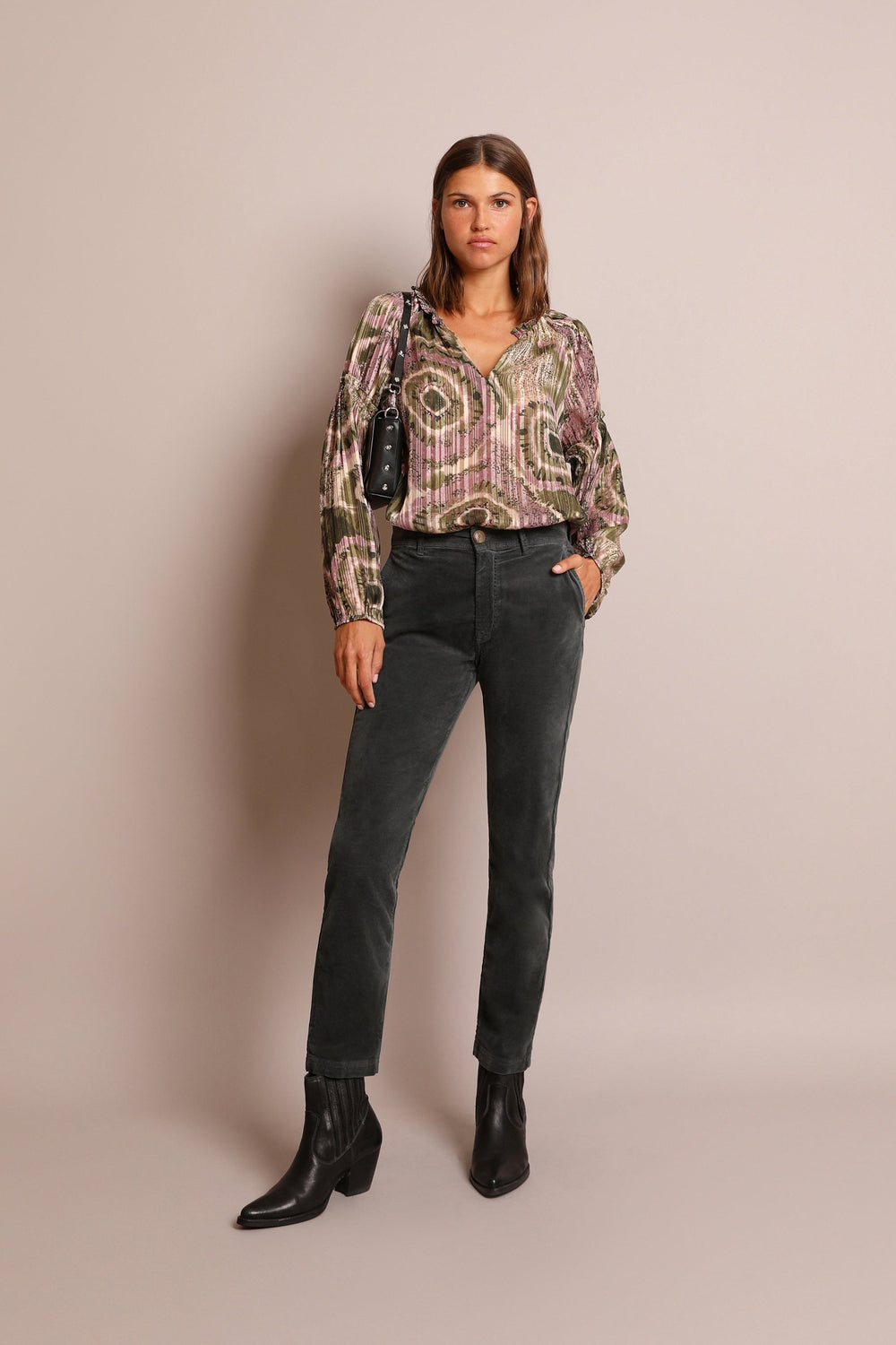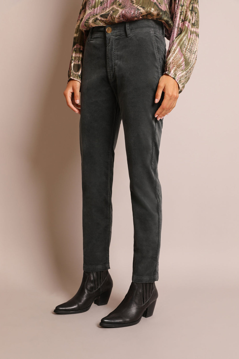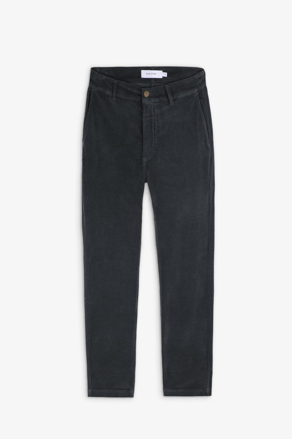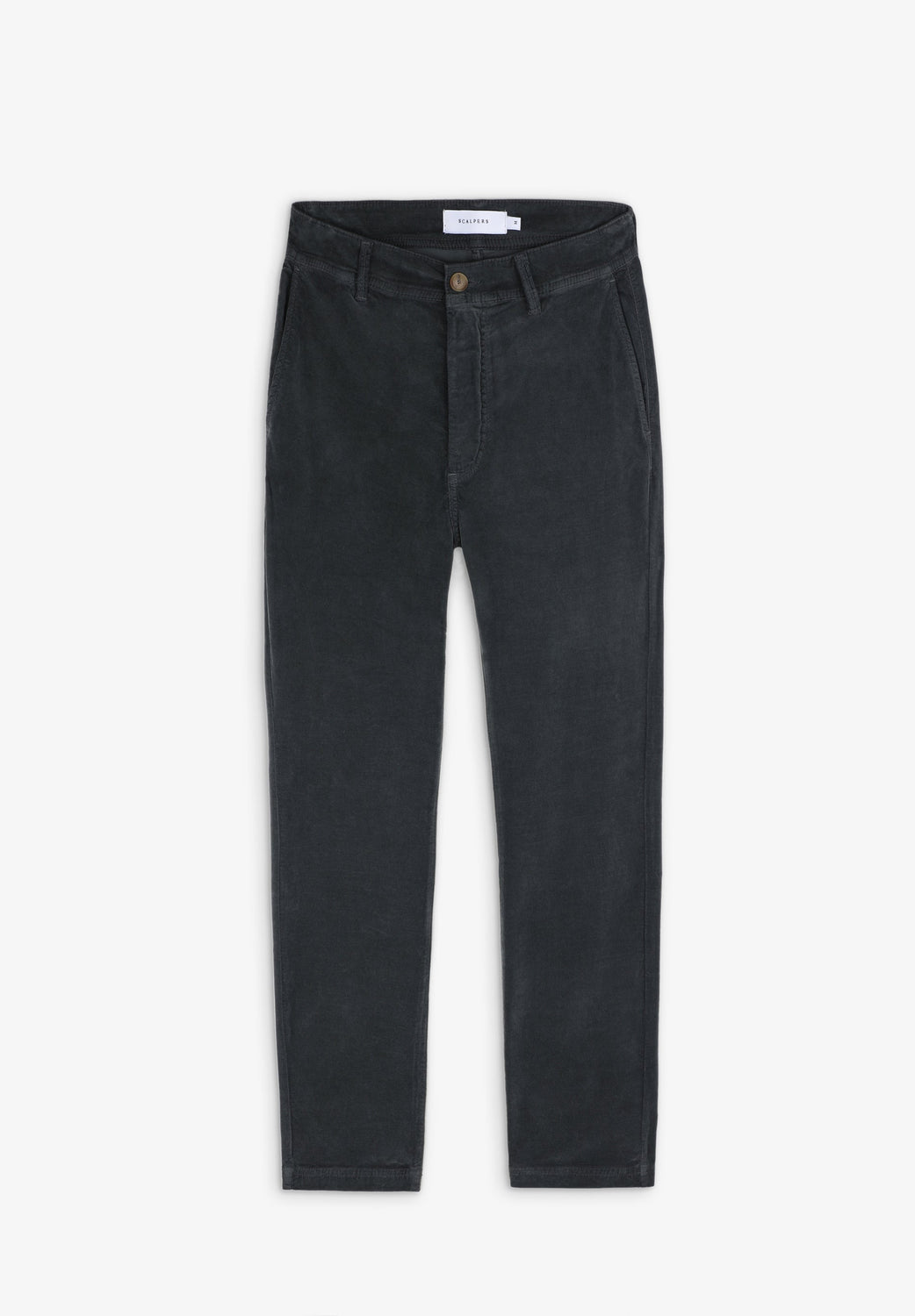 Corduroy chino trousers. Made of a slightly stretchy cotton blend, zip and button fastening, side and back pockets and belt loops