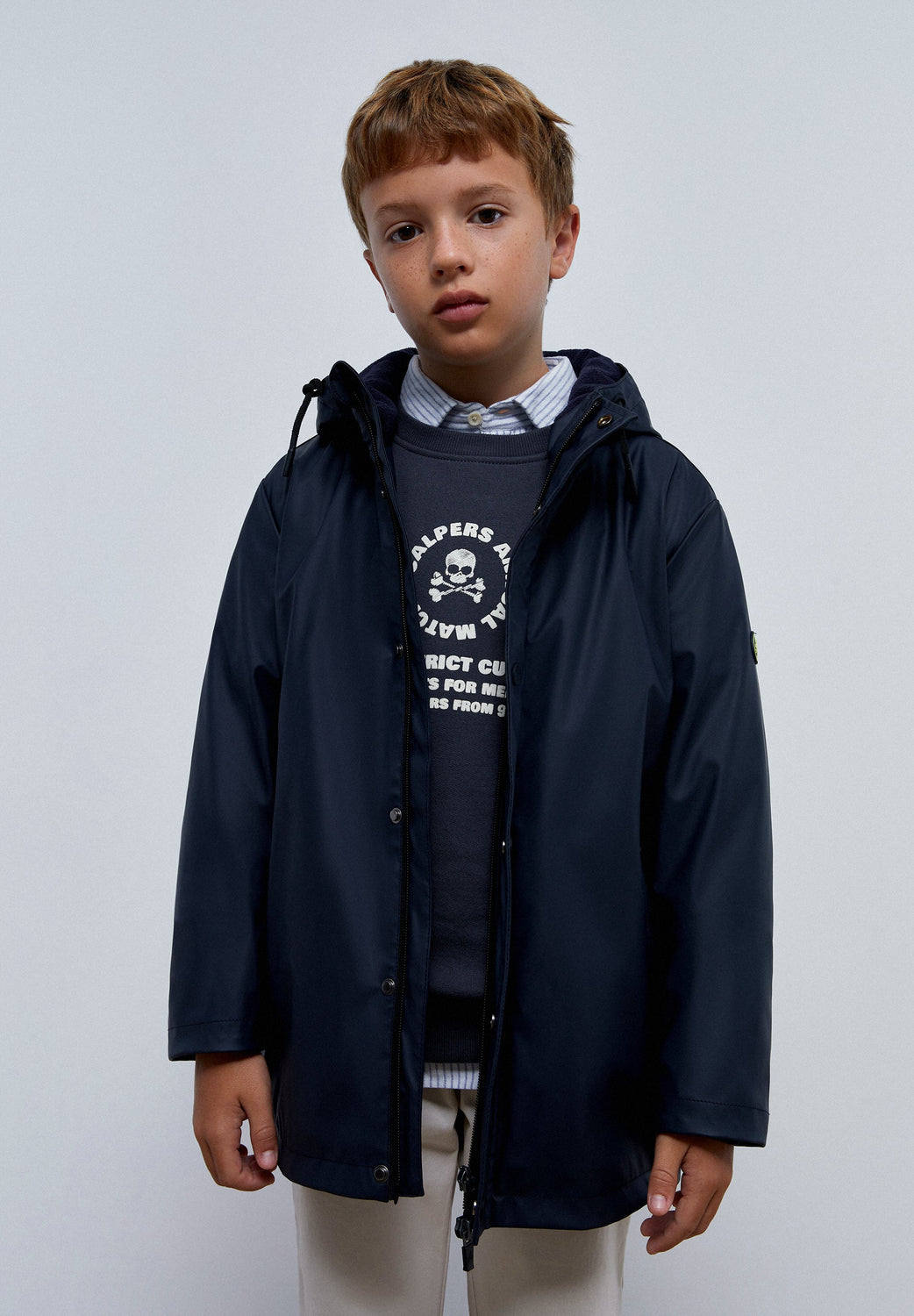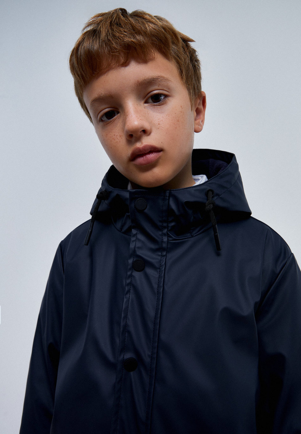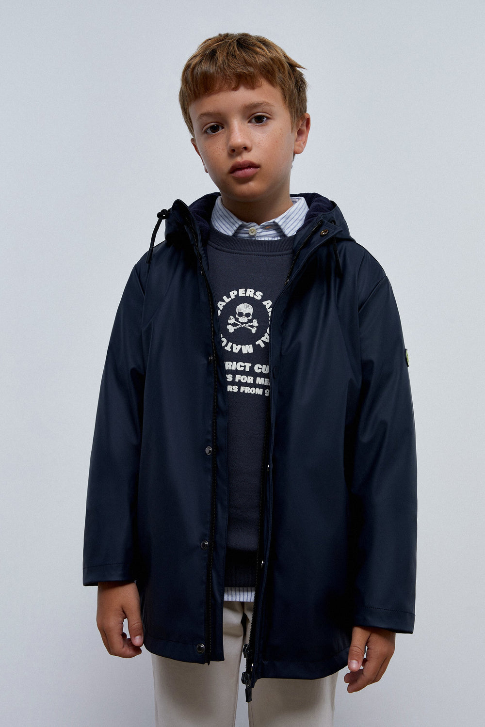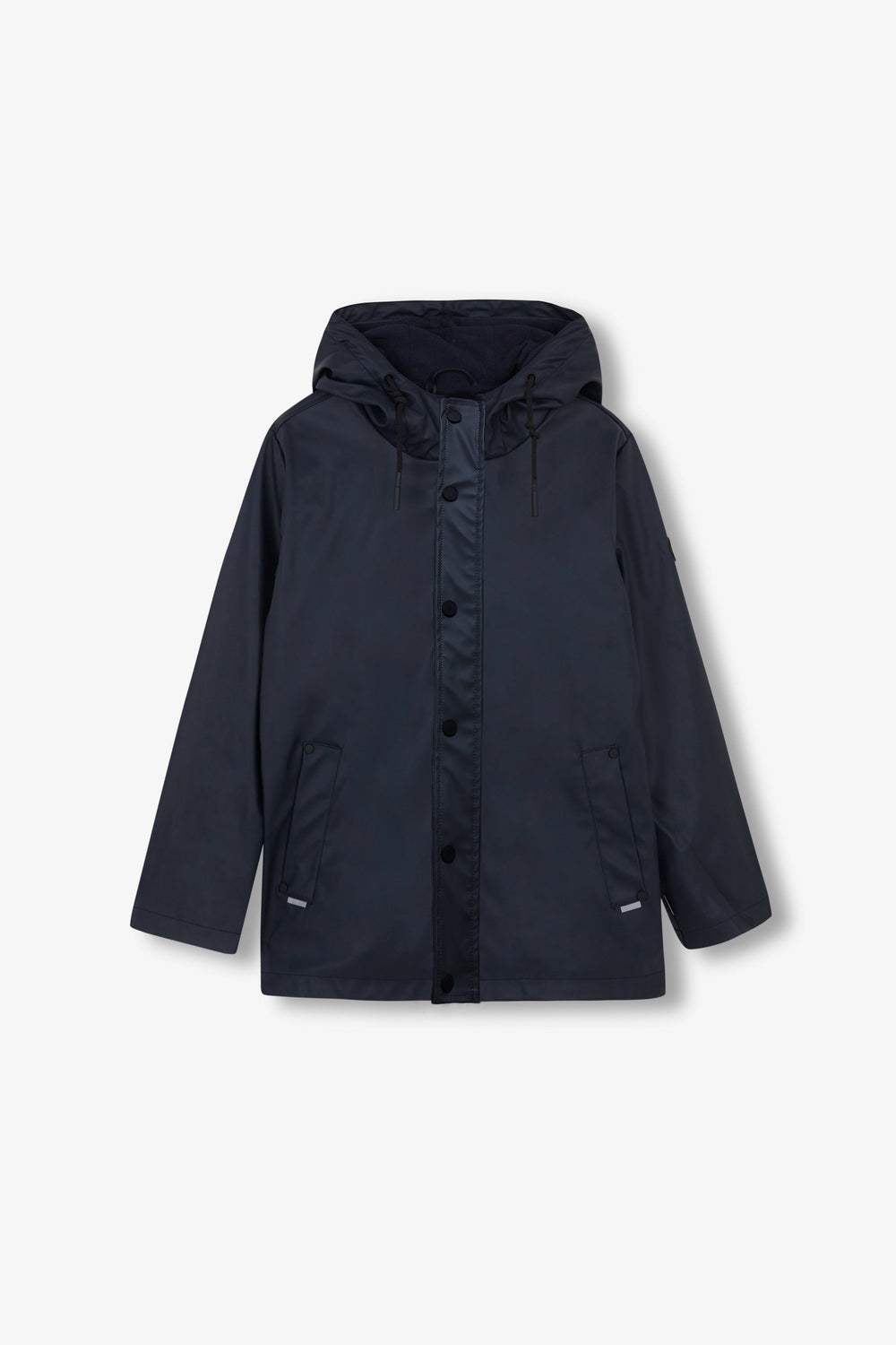 - Double slider thermo-sealed zip and flap pockets with snap button fastening