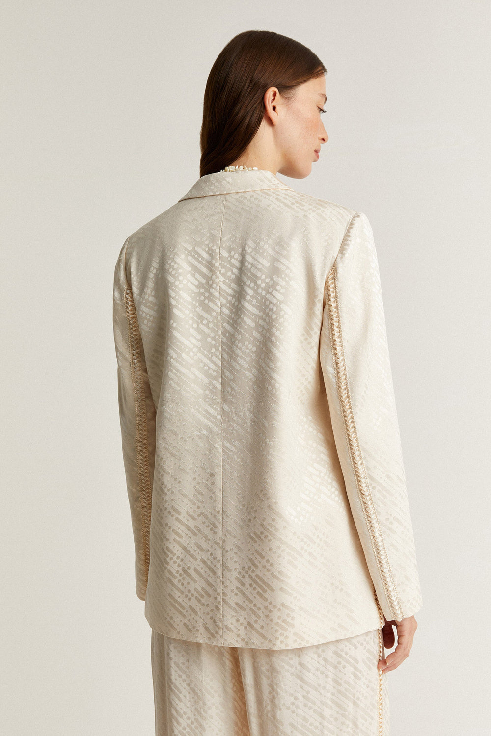 Jacquard blazer with matching braided strip detail.