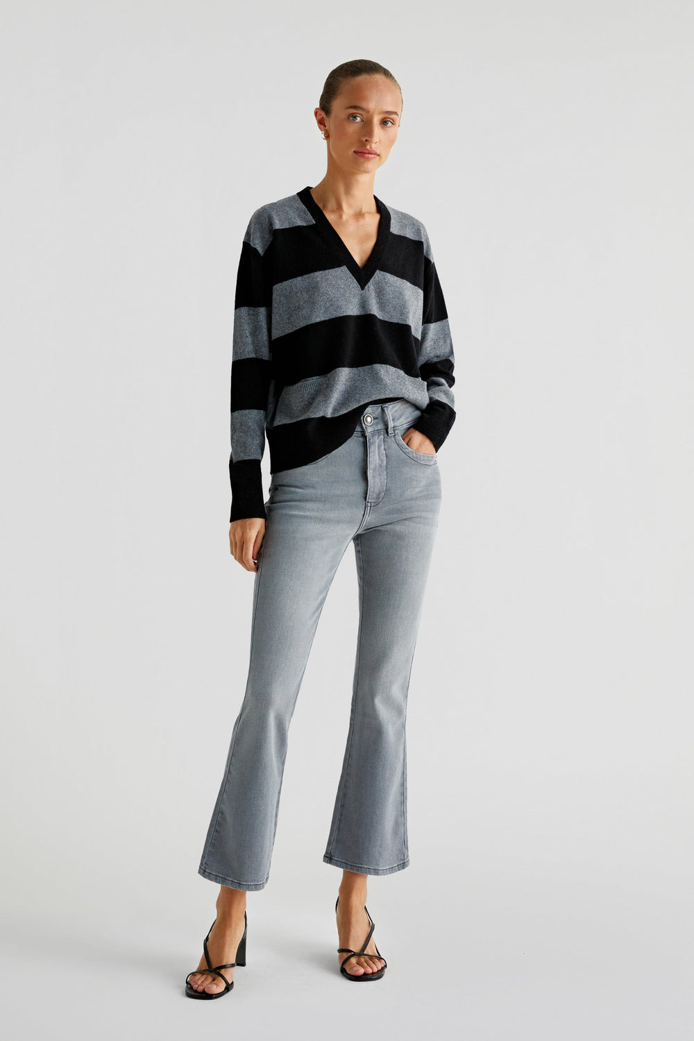 STRIPED SWEATER WITH POCKETS AND V-NECK