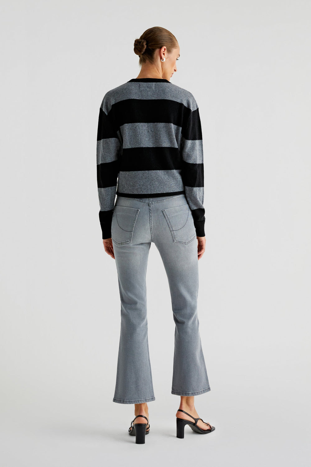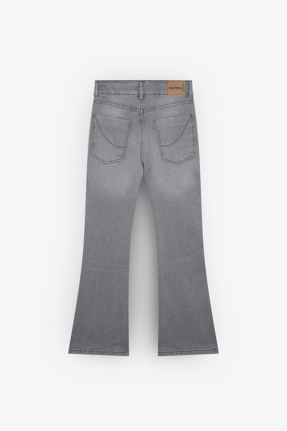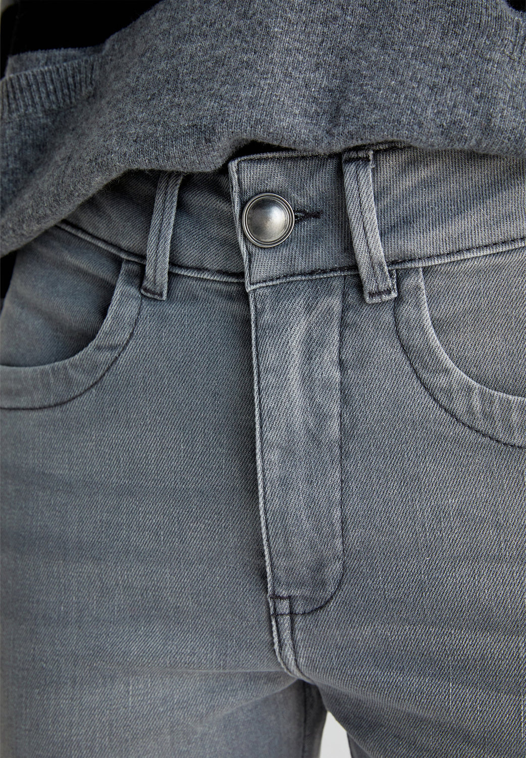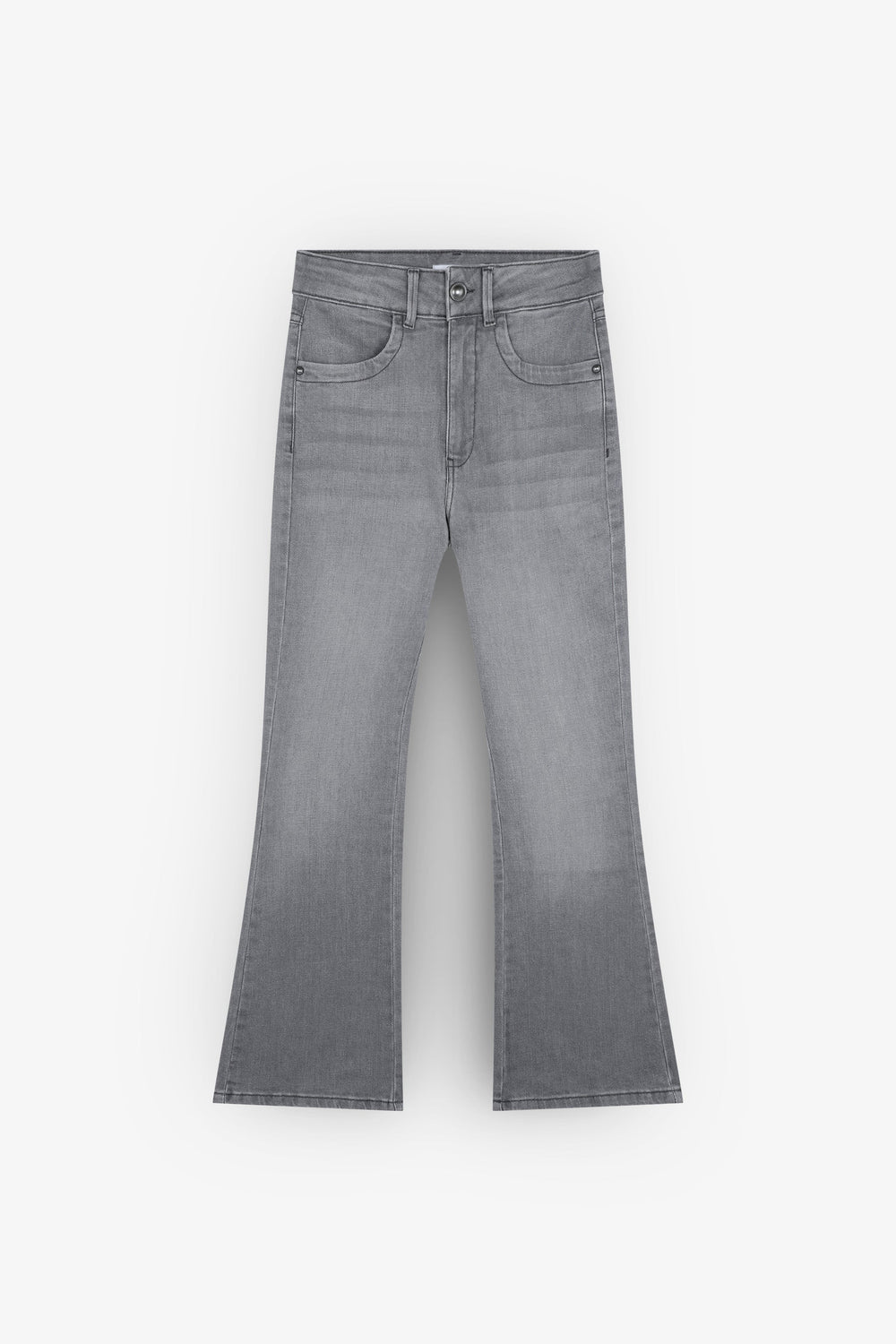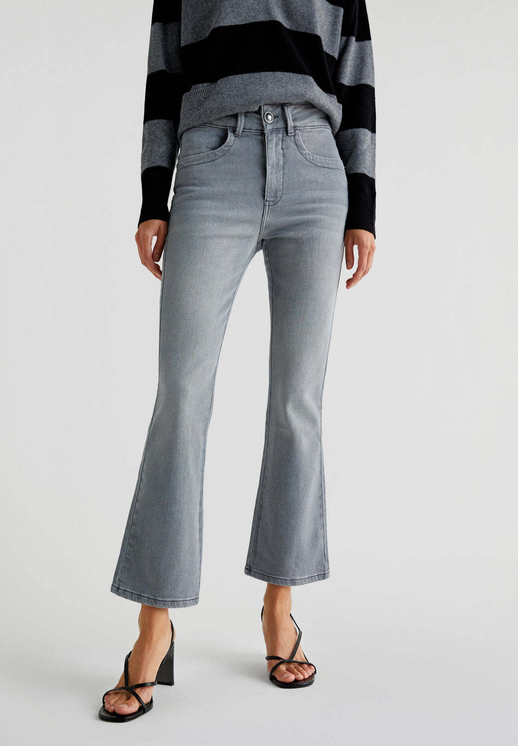 Jeans made from slightly stretchy cotton. Ankle flare fit with zip and button fastening. Back and side pockets and belt loops.