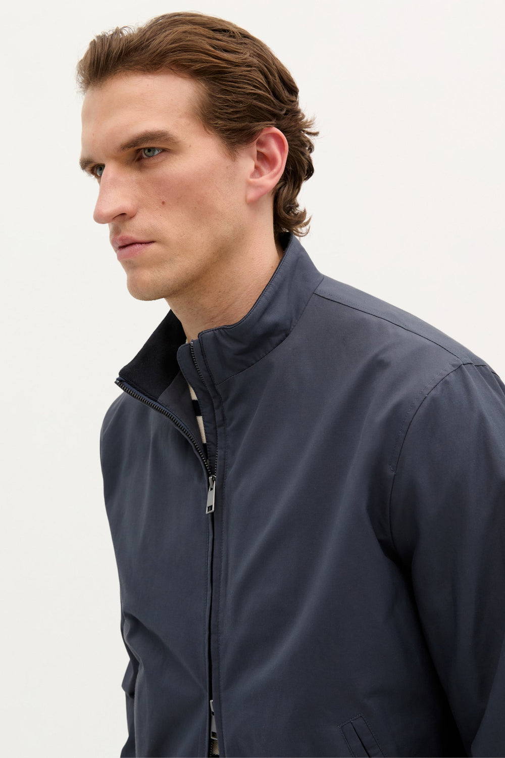 Bomber jacket made of a cotton and technical fabric blend. Regular fit, ribbed collar and zip fastening. Long sleeves with stretch cuffs and pockets with snap button fastening.