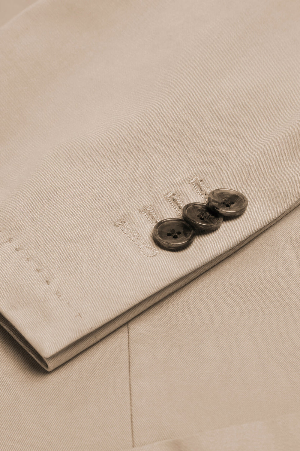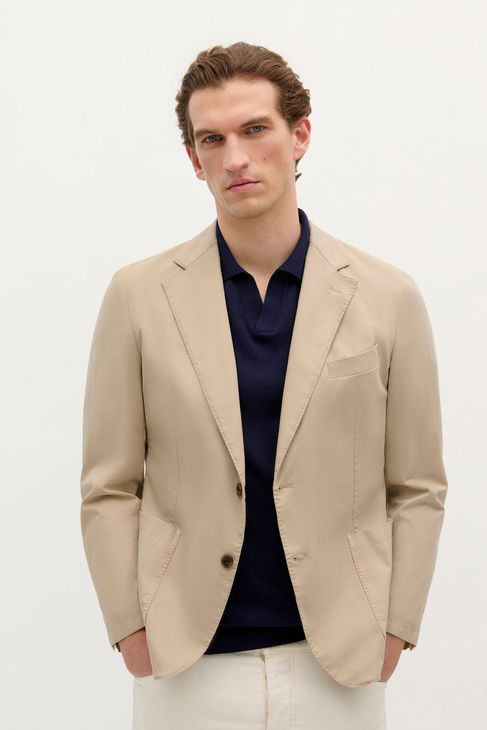 Americana confeccionada en mezcla de algodón. Corte Slim Fit, cuello con solapas de muesca y ojal y cierre con dos botones. Manga larga terminada en puño de tres botones y bolsillos delanteros. Aberturas traseras y bolsillos interiores.