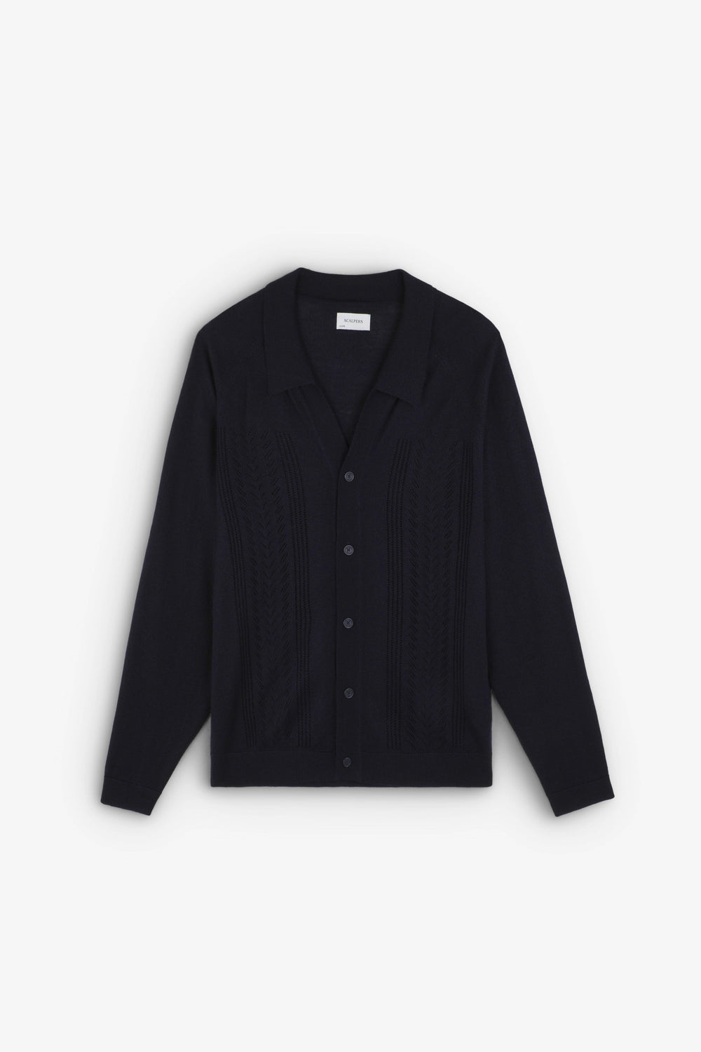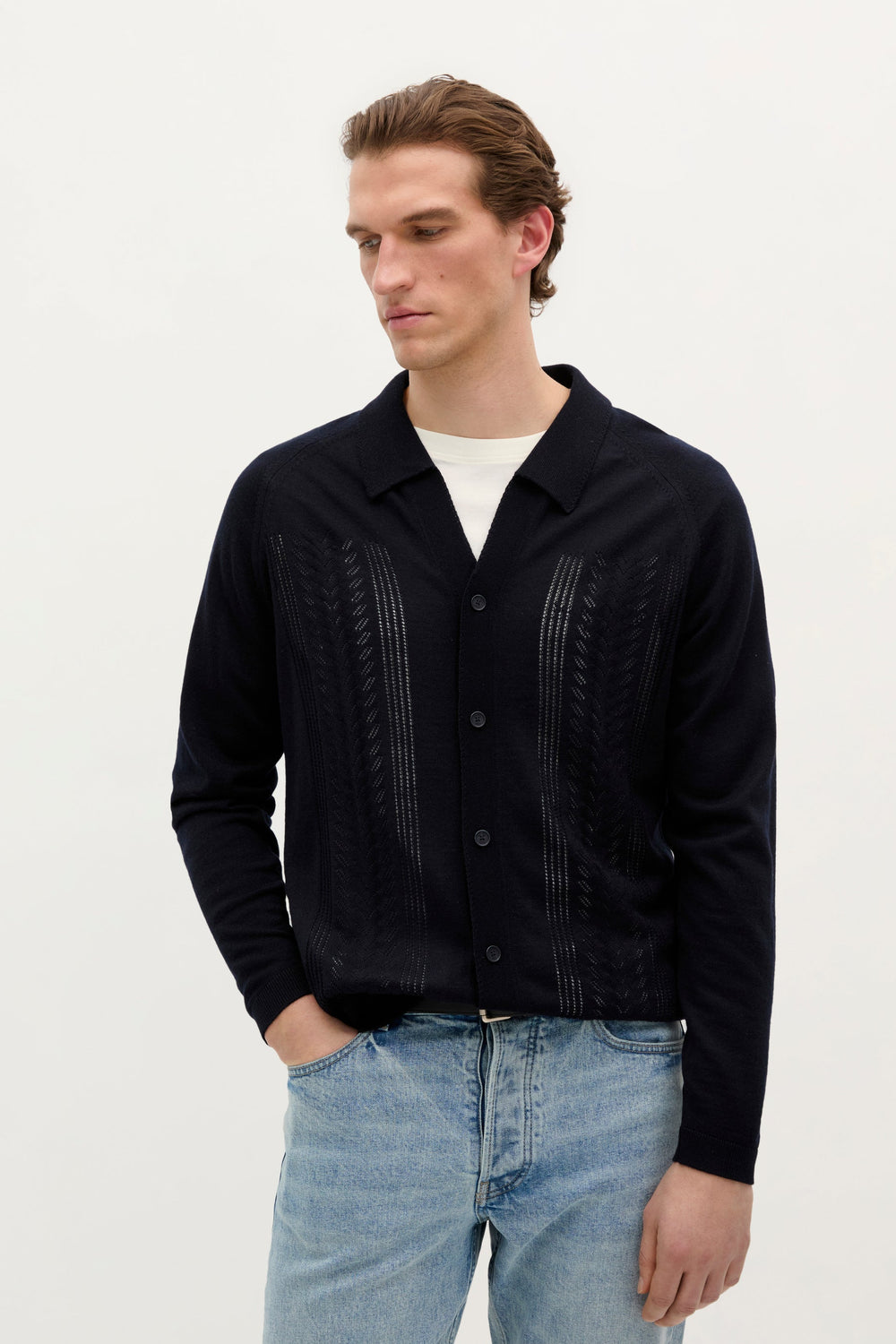 Premium cardigan made of a wool blend. Regular fit, classic collar and button fastening. Long sleeves and open knit detail.