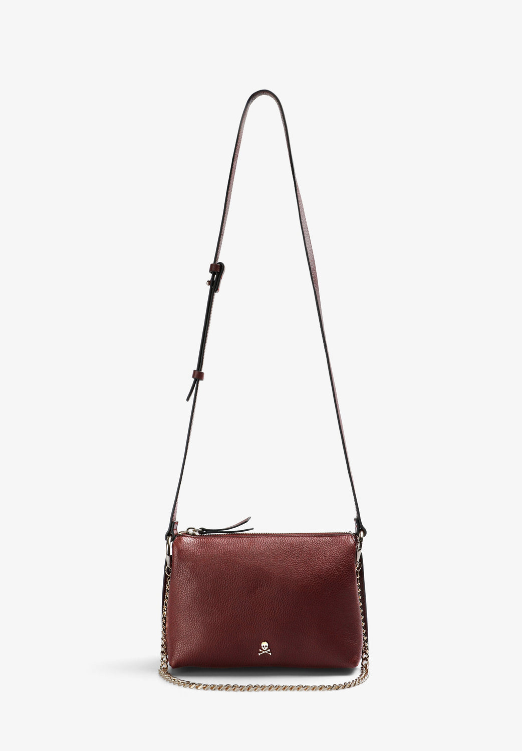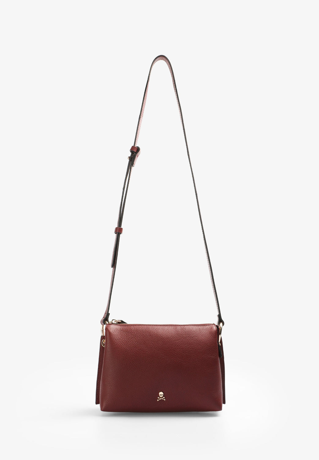 Bag made of 100% leather. Zip fastening, a long adjustable strap and a metallic skull.