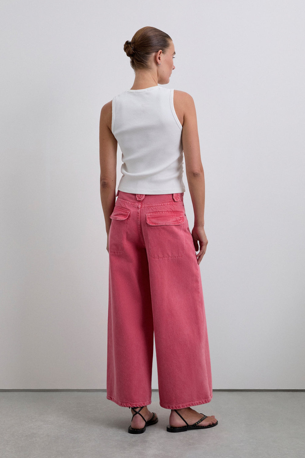 Culottes made of 100% organic BCI cotton. Two front pockets. Two back pockets with flaps. Seams detail. Faded effect. Button and zip front fastening.