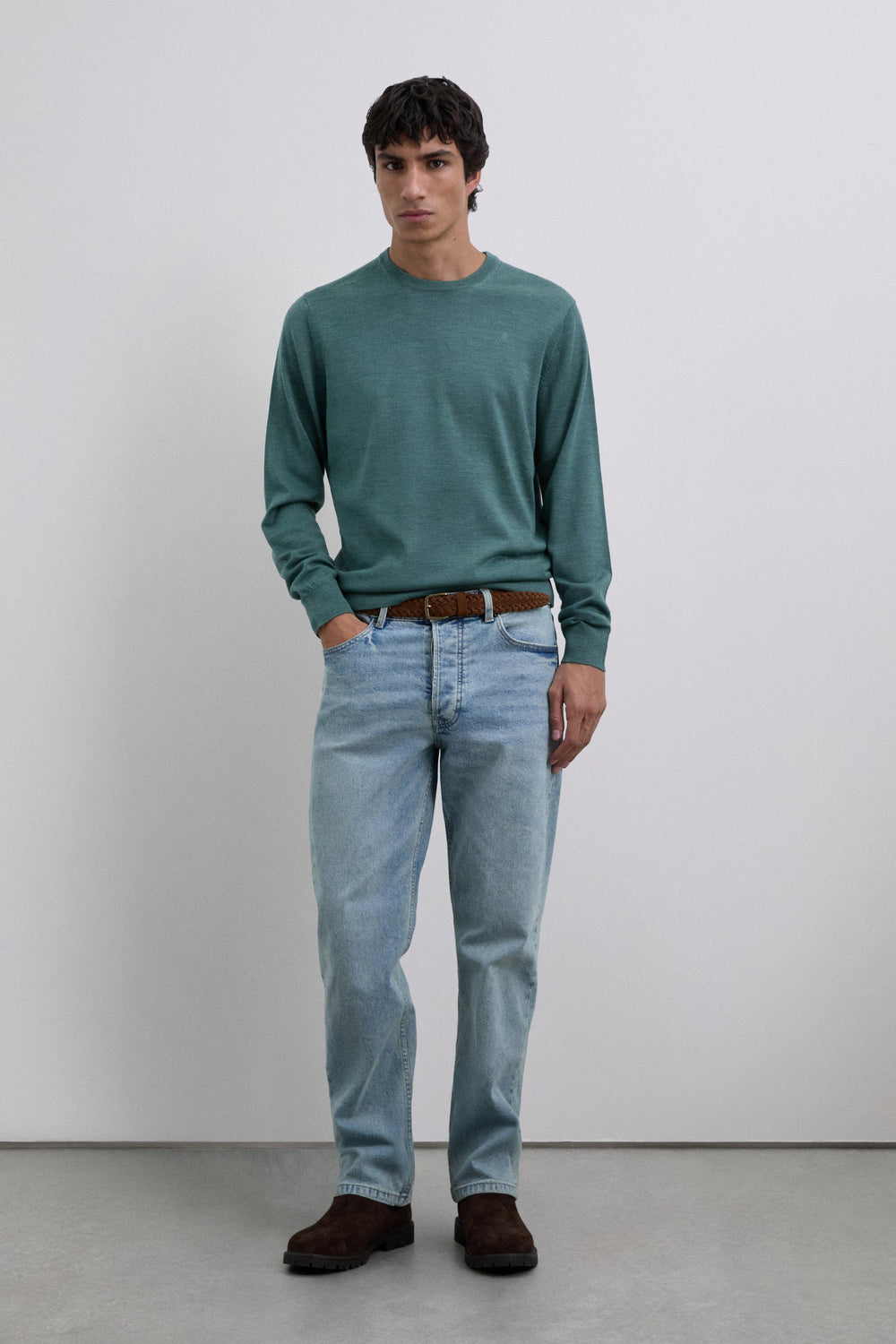 Sweater made of 100% wool. Regular Fit. Round neck. Long sleeves. Matching embroidered skull detail on the chest. Ribbed trim.