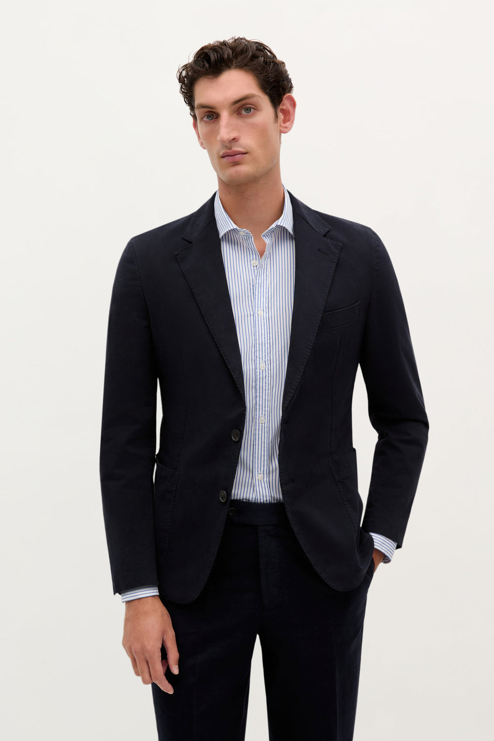 Lightweight blazer. Made of 100% cotton. Regular fit, unstructured and unlined. Notched lapel collar. Button fastening. Long sleeves with working buttons and one closed one. Patch pockets.