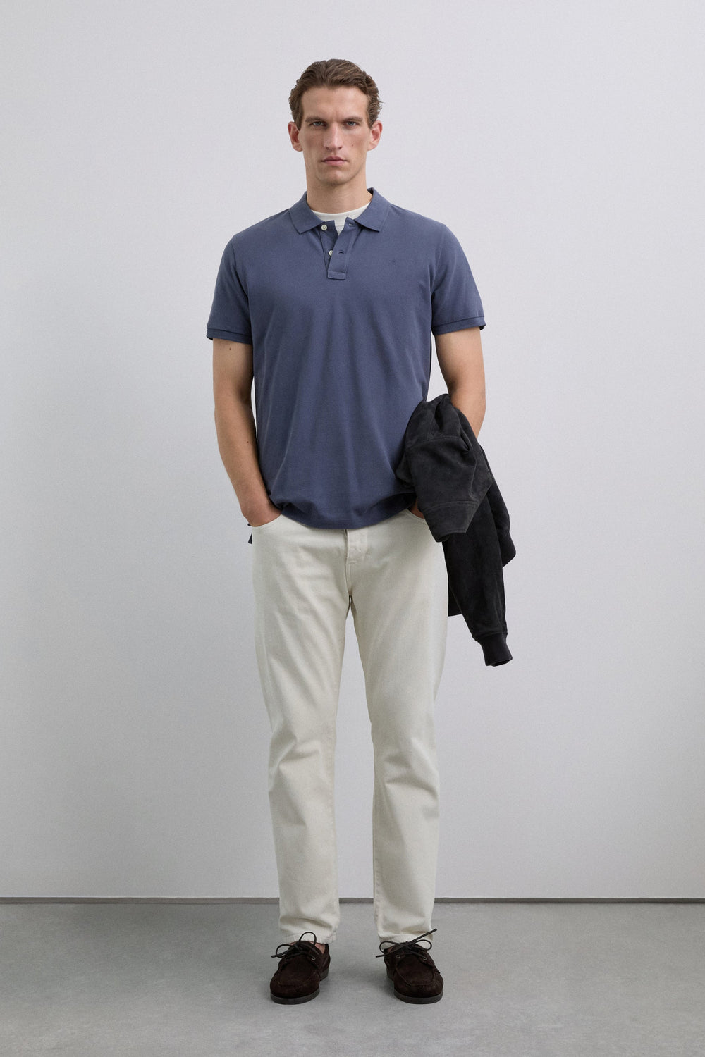 Basic polo shirt made of 100% BCI cotton. Regular fit, classic collar and button fastening. Short sleeves and matching embroidered skull.