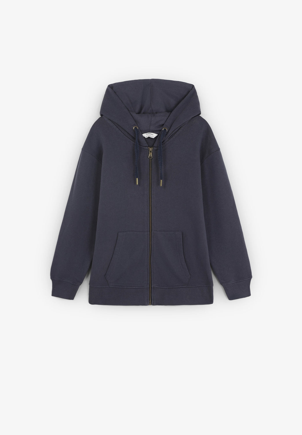 Sweatshirt made of 100% BCI cotton. Hood. Long sleeves. Ribbed trim. Front zip fastening and front pockets. Embroidered logo on the back.