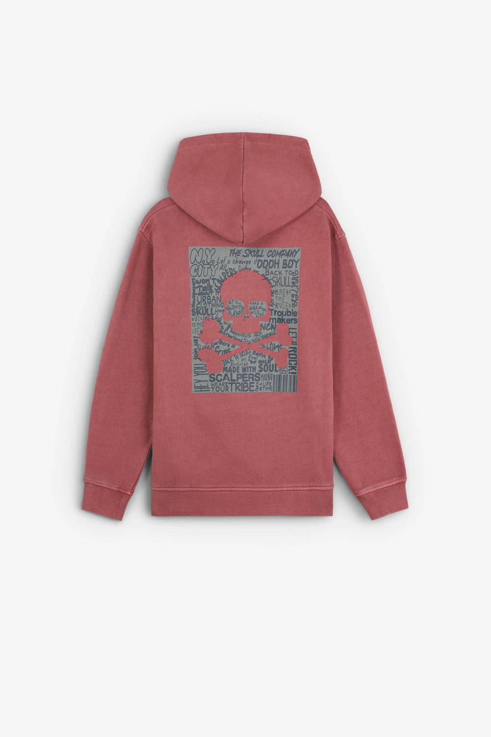 Sweatshirt with hood made of 100% BCI cotton. Print on chest and back. Long sleeves with cuffs and front pouch pockets. Skull label detail on waistband.