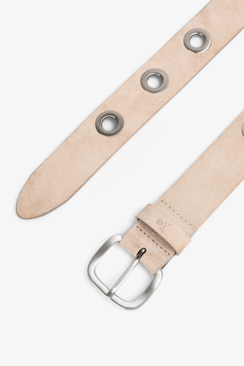Leather belt. Adjustable metal buckle fastening. Matching embroidered skull detail.