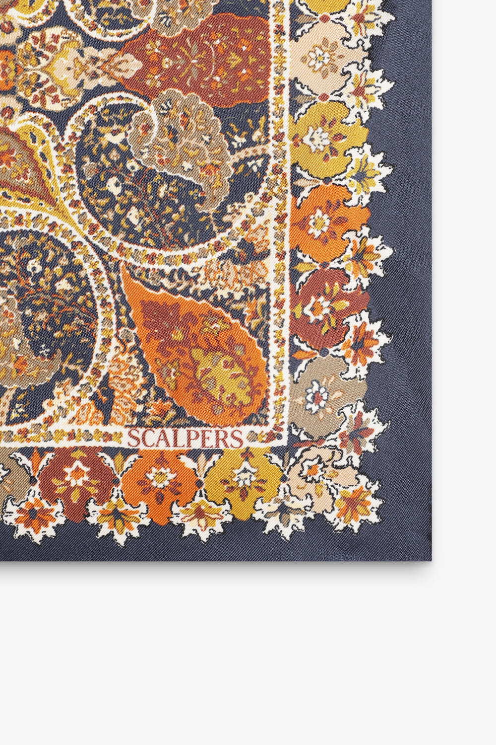 SILK PAISLEY SKULL PRINT POCKET SQUARE