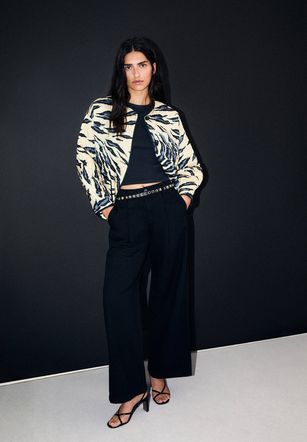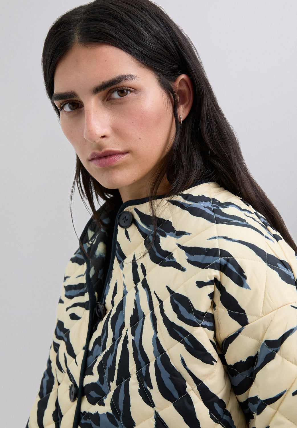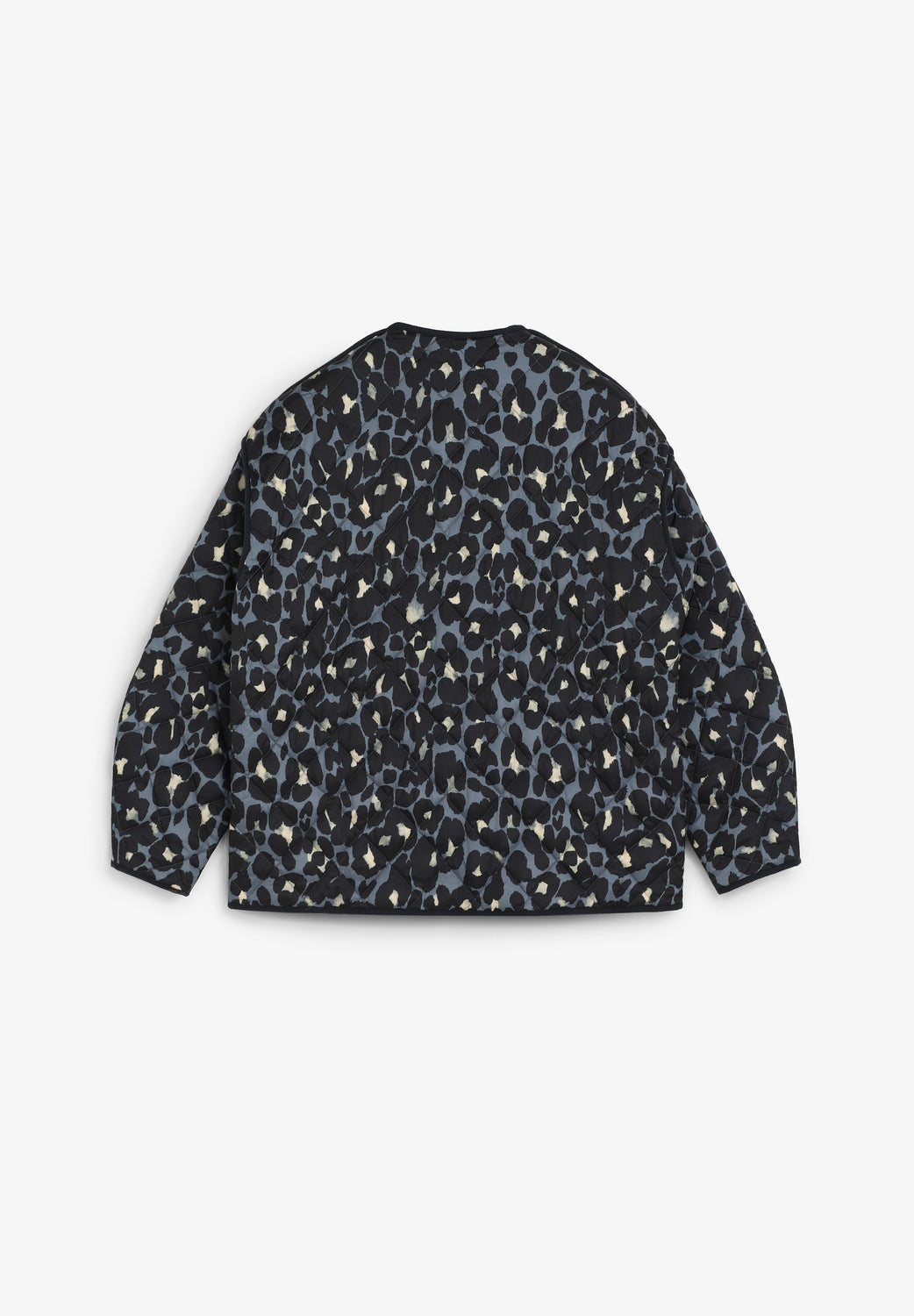 Reversible puffer jacket. Animal print. Long sleeves. Two front pockets. Button fastening.