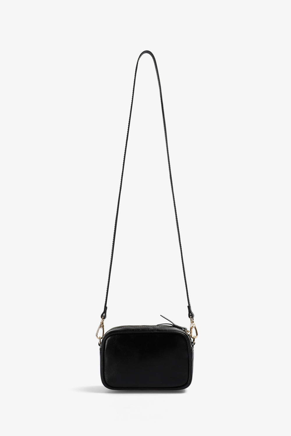 Small size bag. Made of 100% leather. Zip fastening. Long strap. Logo detail on the front.