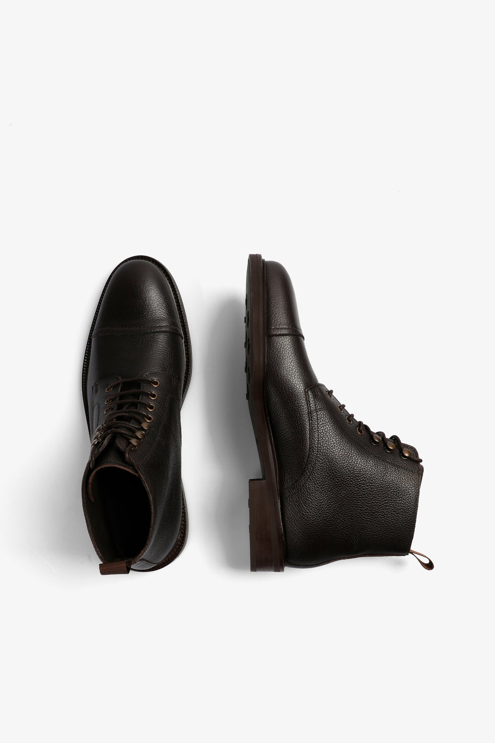 Boots made of 100% cowhide leather. Adjustable lace-up fastening. Heel tab. Lined in leather.