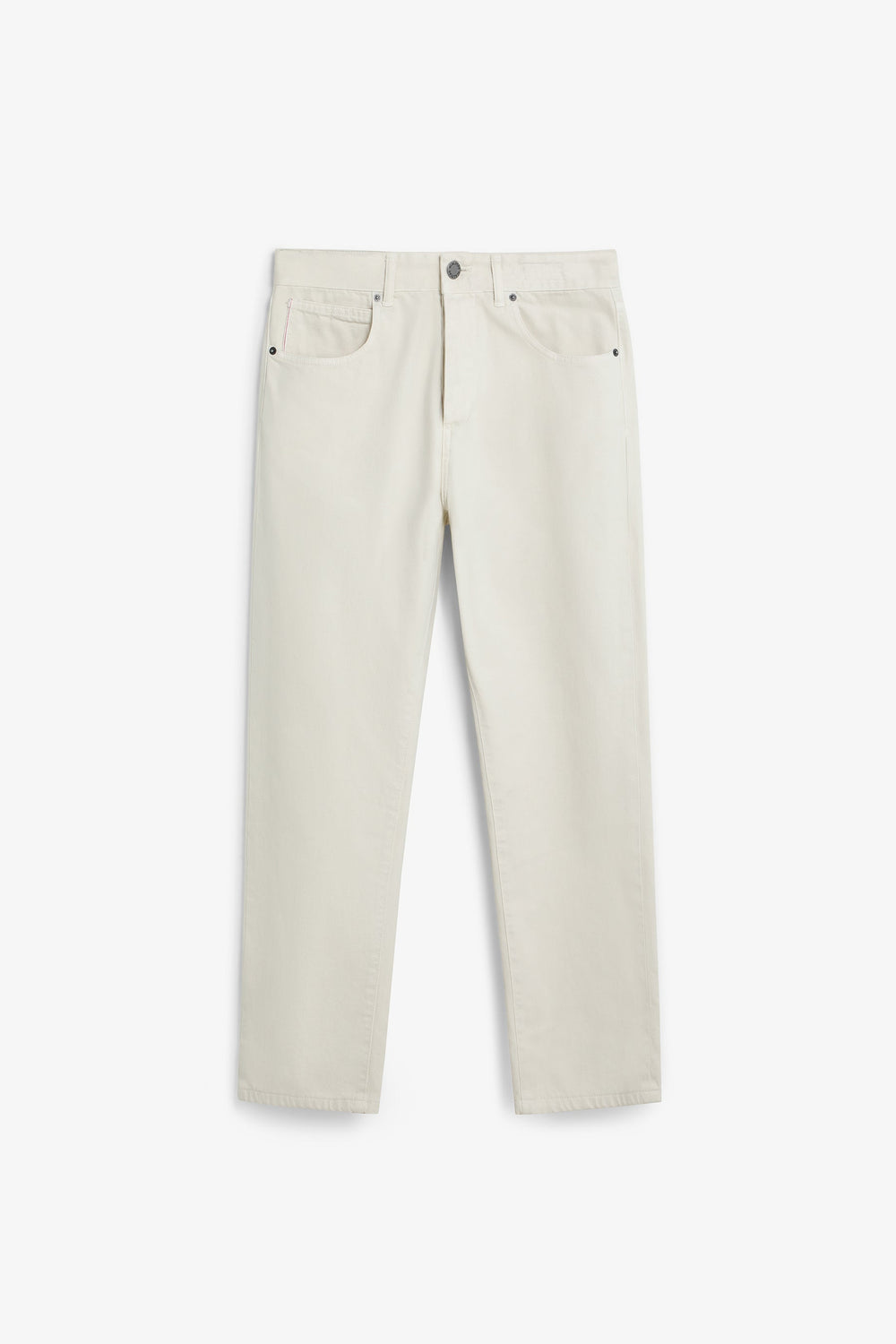 Straight trousers made of 100% cotton. Front and back pockets. Button and zip fastening. Belt loops at the waist. Logo label details on the belt and pocket.