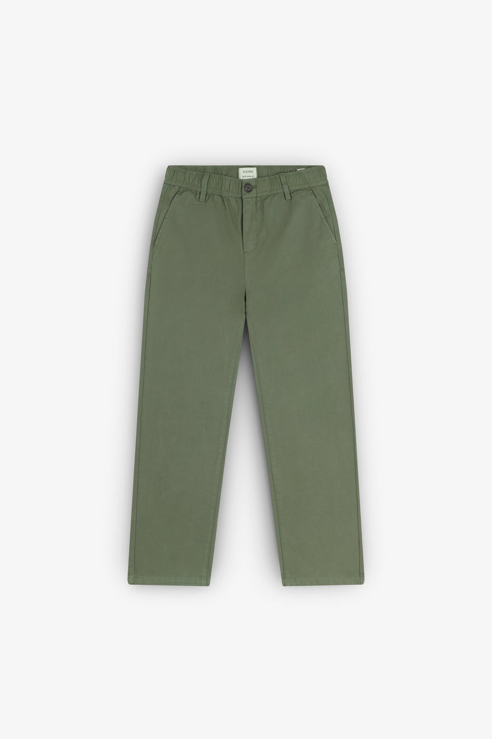 Chino trousers made of 100% BCI cotton. Two front and back pockets. Button fastening and belt loops. Logo label detail on the pocket.