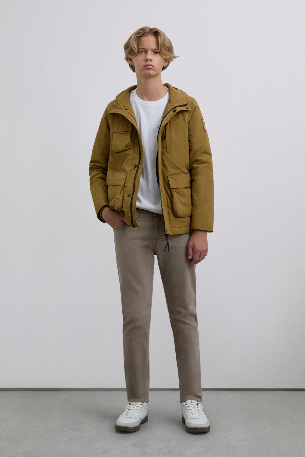 HOODED JACKET WITH POCKETS AND LOGO