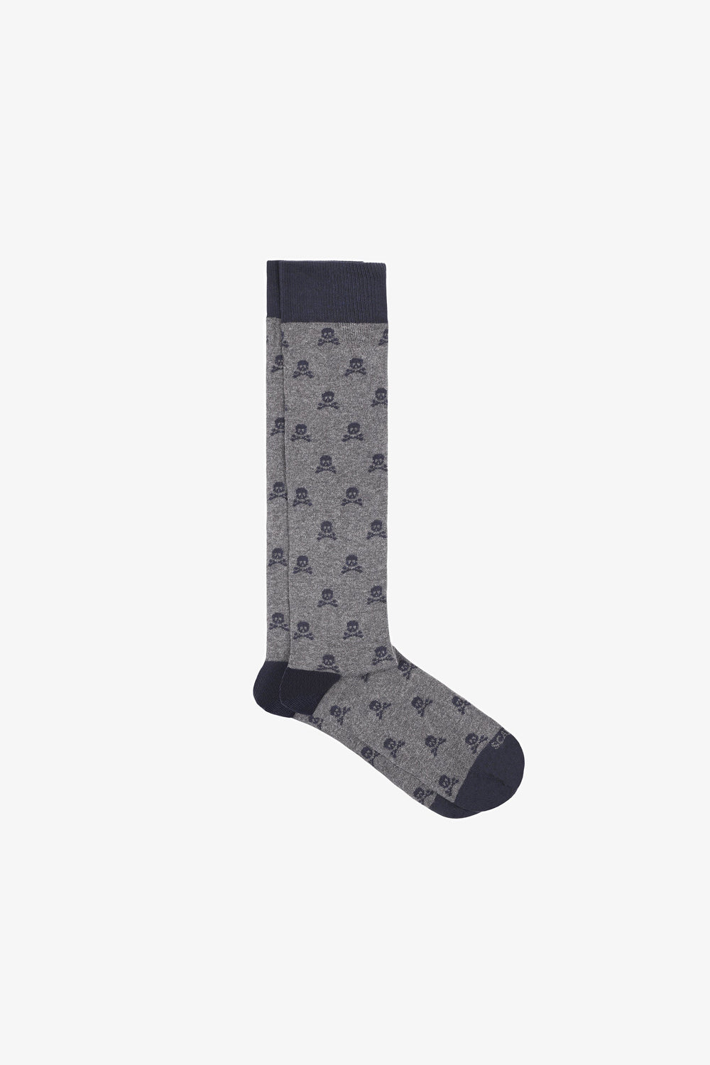 Calcetines con motivos de calaveras all over confeccionados en tejido mezcla de algodón. Caña larga y puntera a contraste.