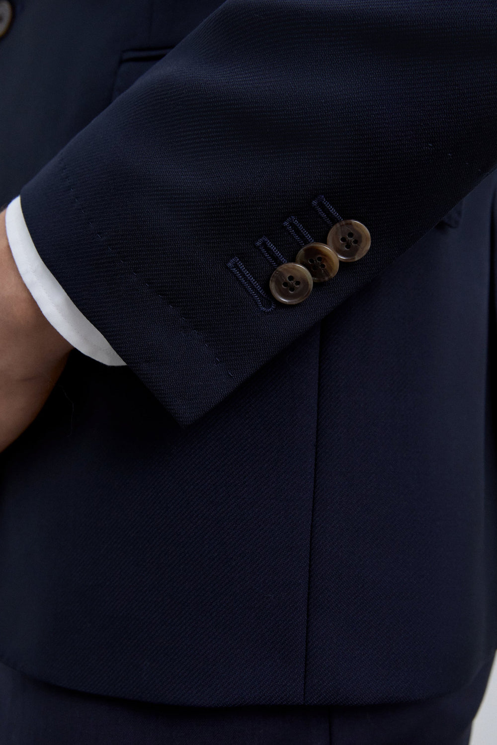 Classic plain blazer. Crafted from 100% Marzotto wool fabric. Semi-structured Regular Fit. Notch lapel collar. Button fastening. Flap pockets with ticket pocket. Long sleeves finished with functional buttoned cuffs.
