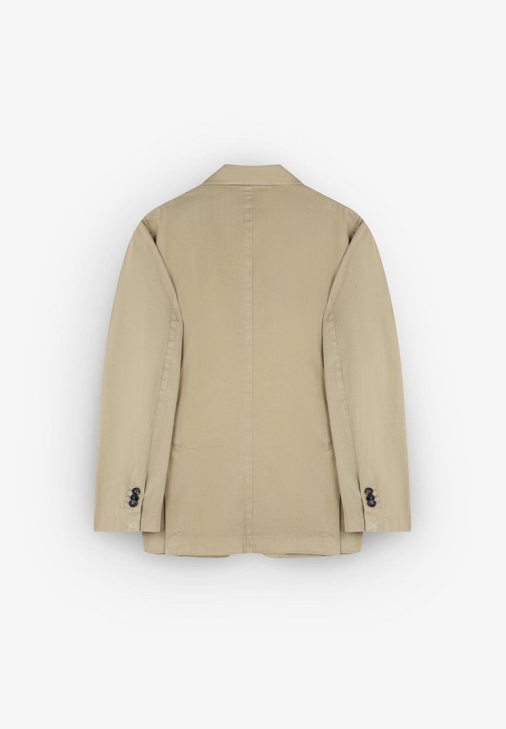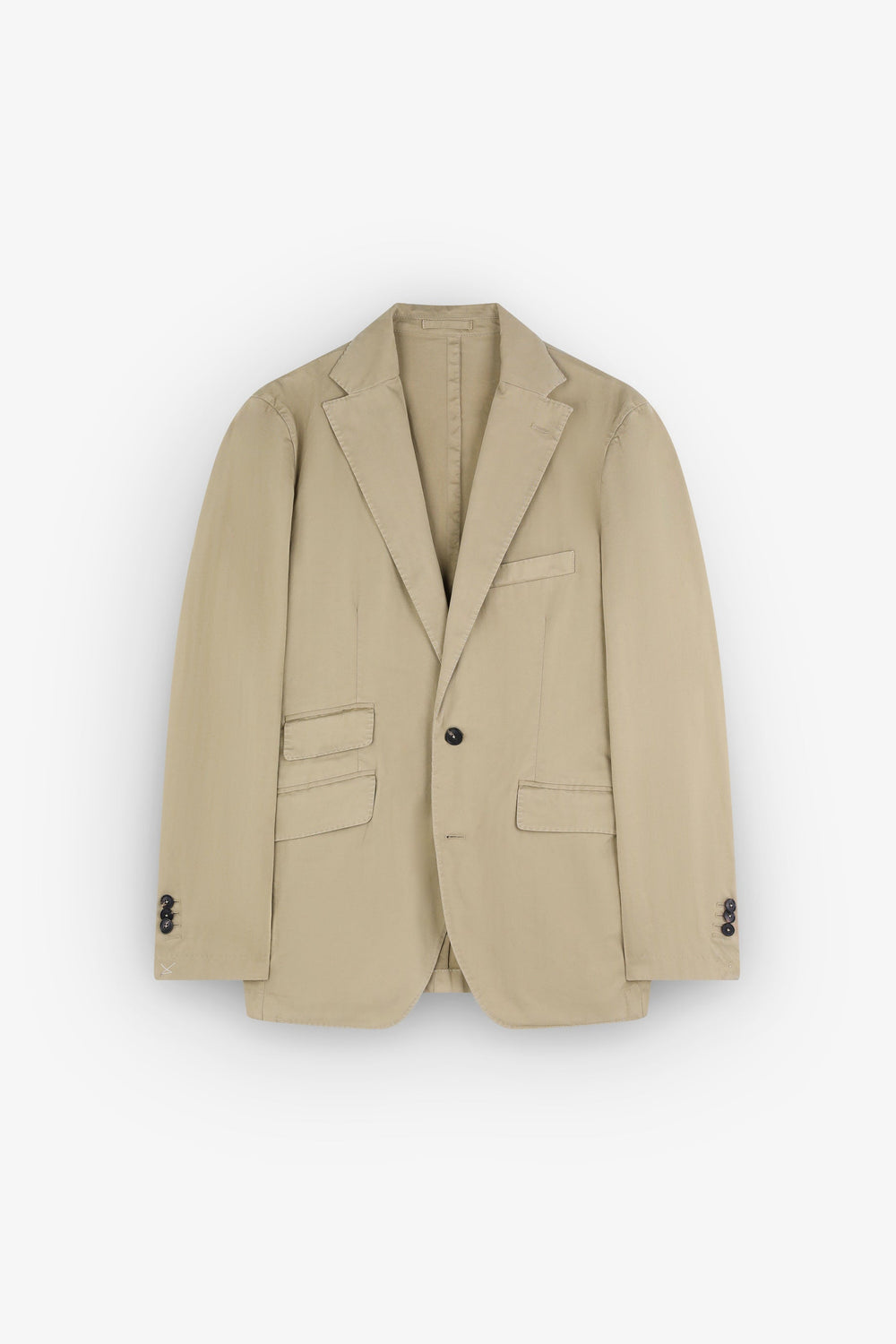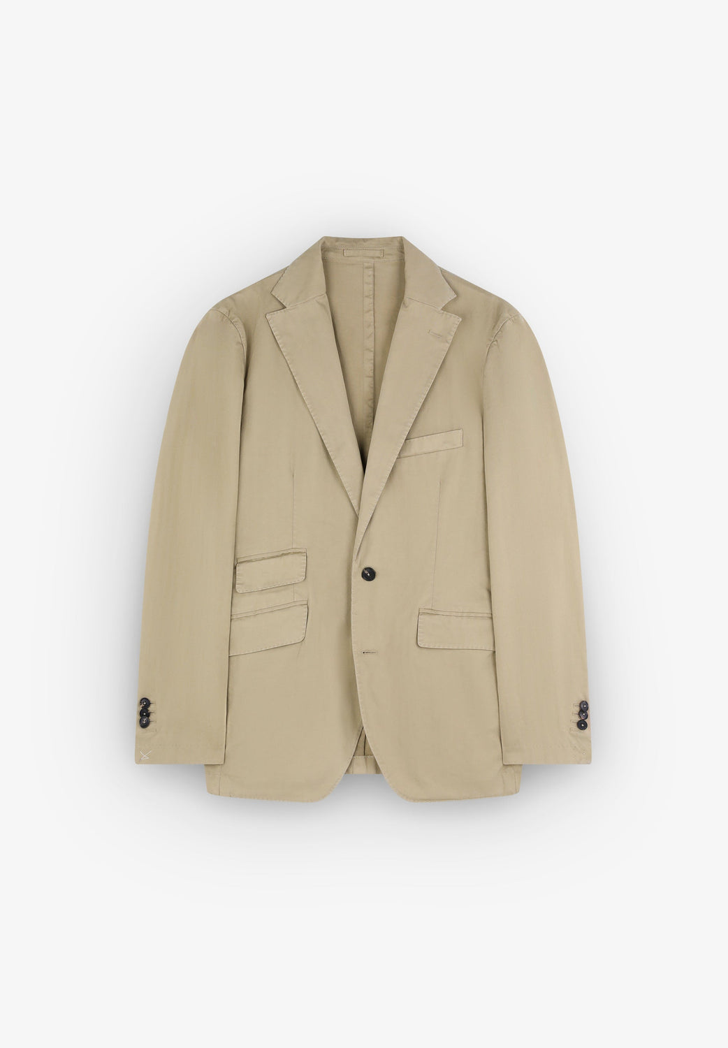 Beige blazer. Crafted from a slightly elastic cotton blend. Semi-structured, unlined Regular Fit. Notch lapel collar. Button fastening. Long sleeves finished with functional buttoned cuffs and one closed button. Patch pockets.