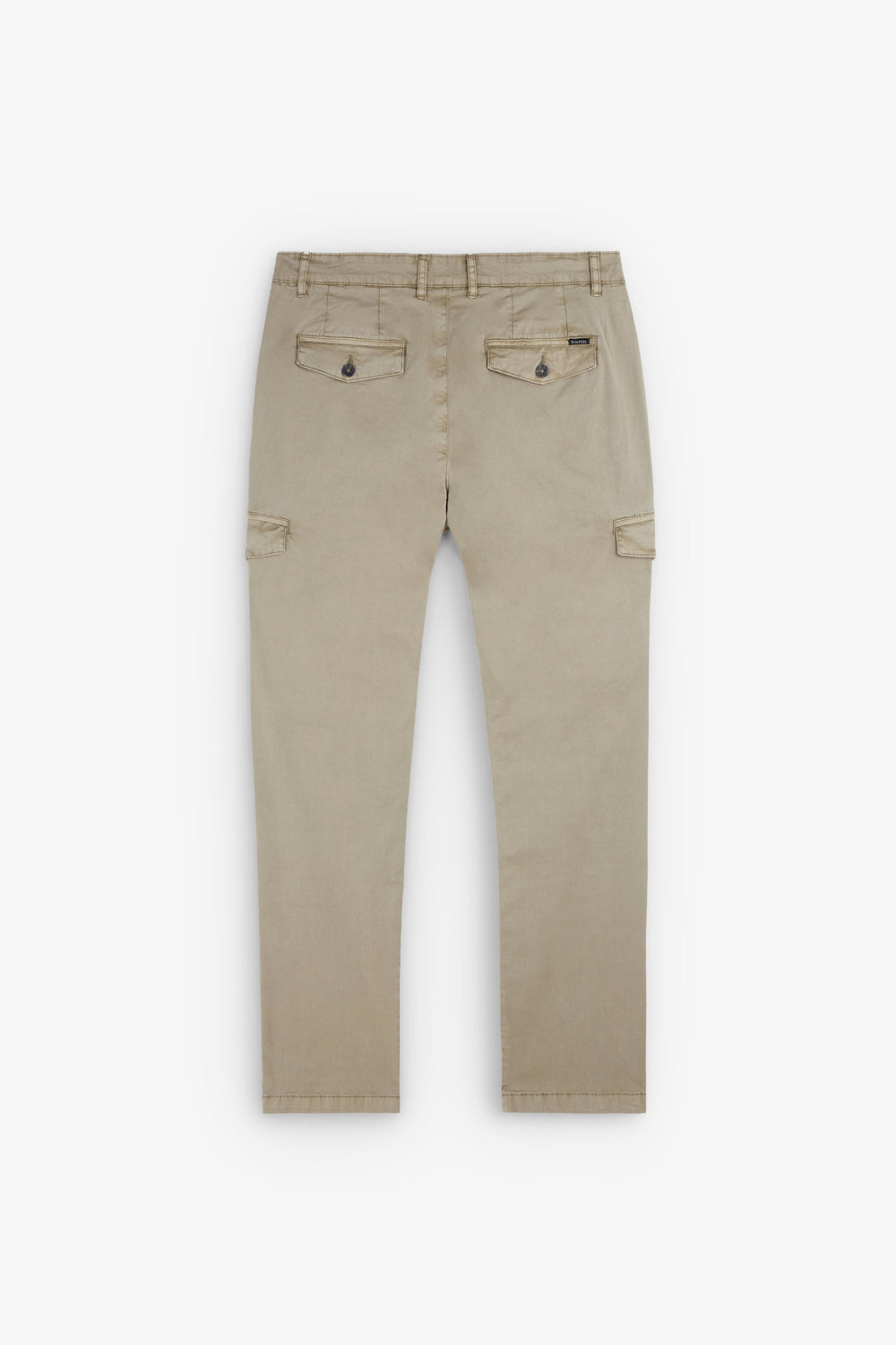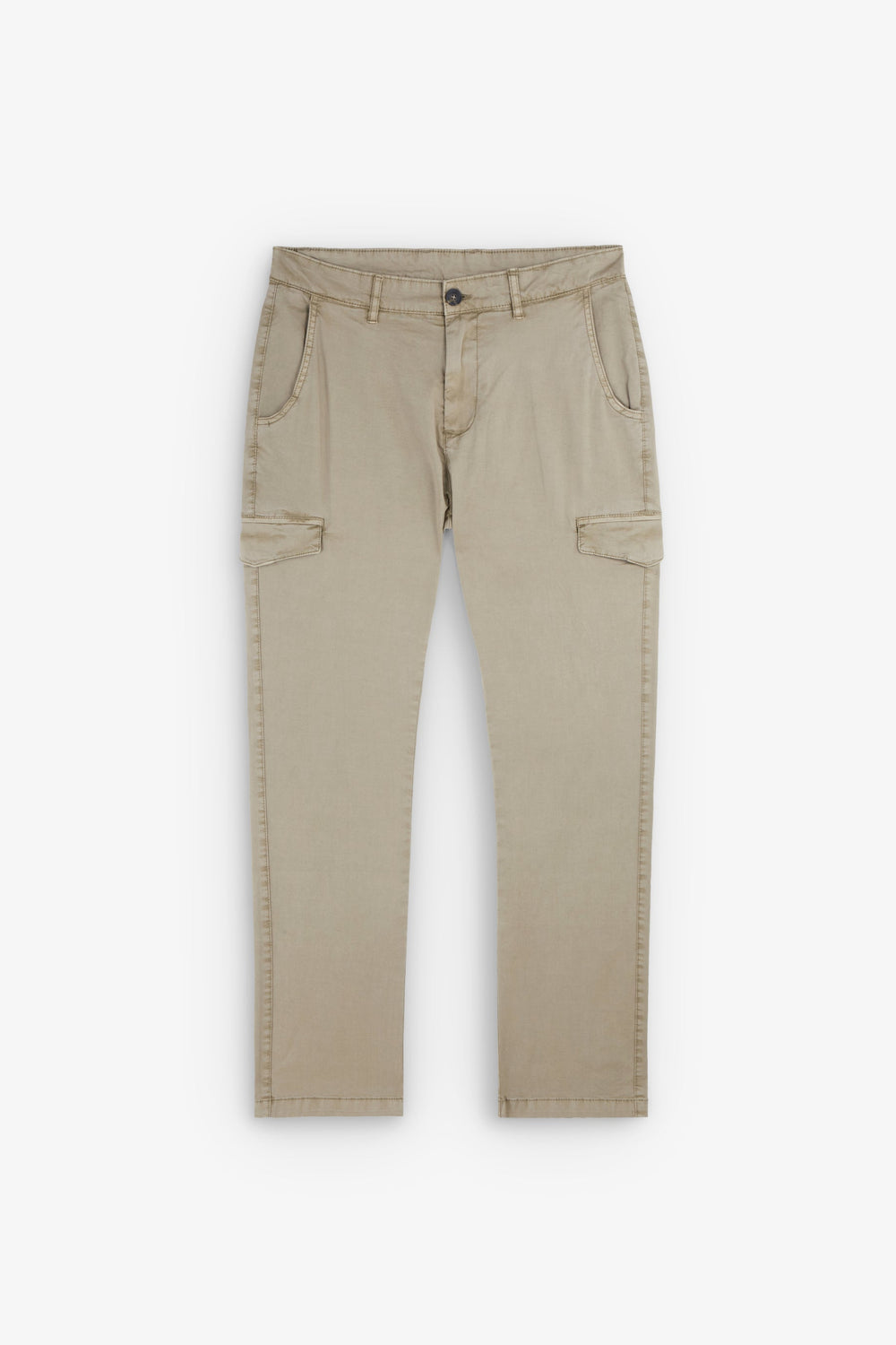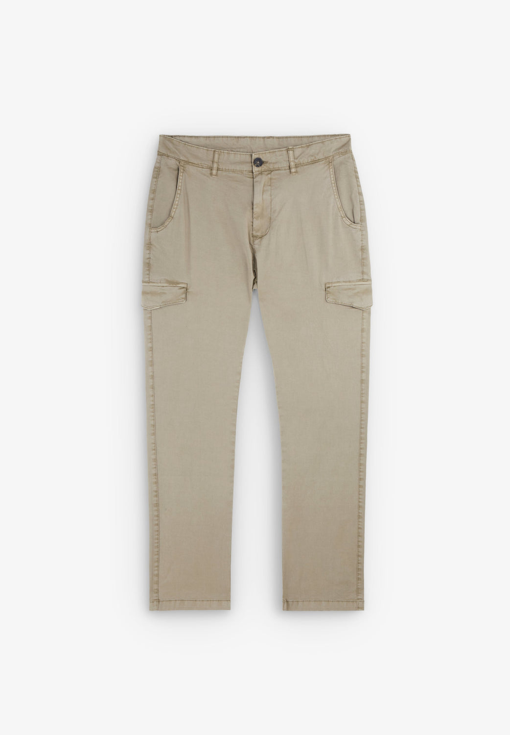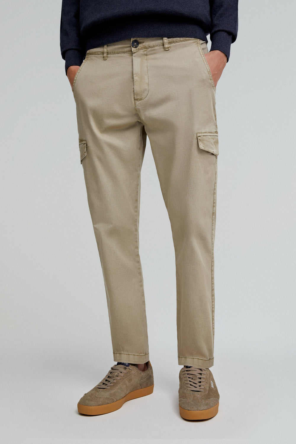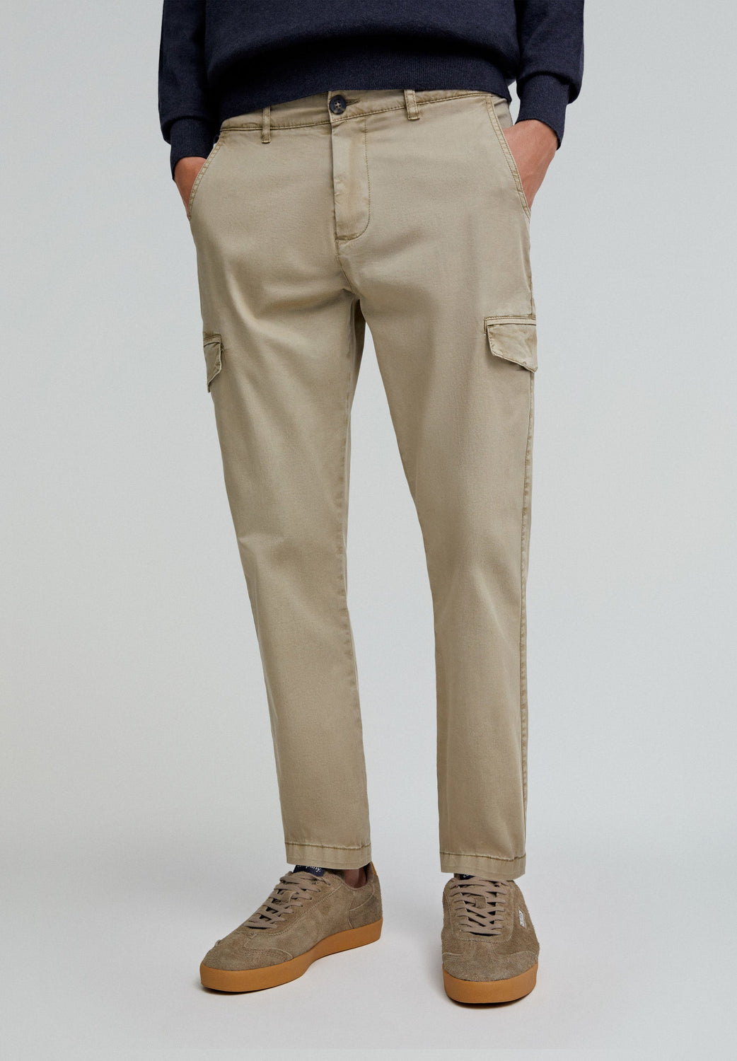 Cargo trousers made of slightly stretch cotton fabric. Regular fit, zip and button fastening. Belt loops at the waist. Leg pockets.