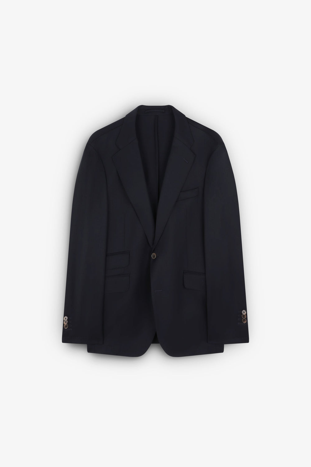 Jacket made of 100% wool. Single button fastening. Notched lapels. Chest welt pocket, side flap pockets. Back vent.