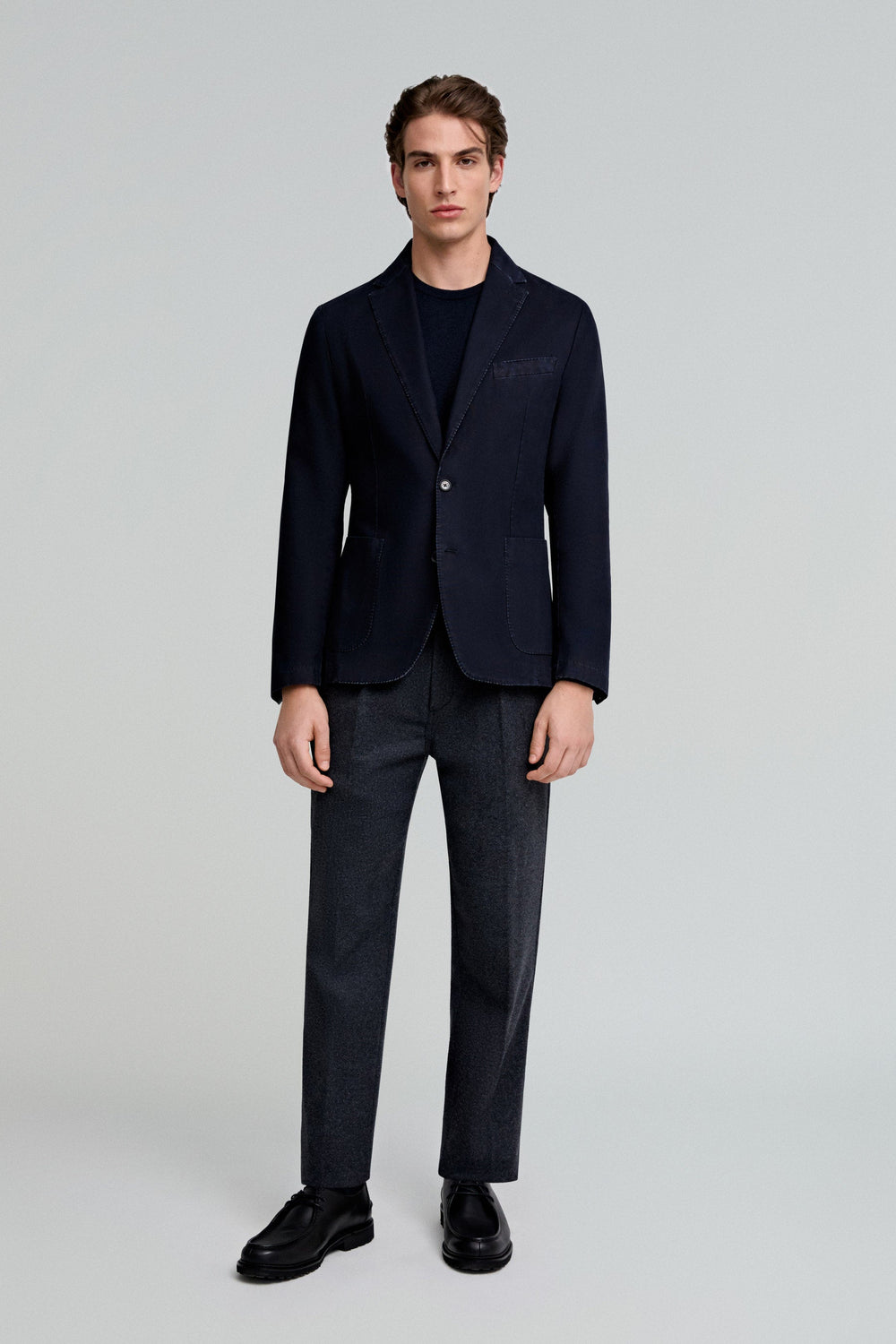 Lightweight blazer. Crafted from slightly elastic Sondrio cotton. Unstructured, unlined Regular Fit. Notch lapel collar. Button fastening. Long sleeves with functional buttoned cuffs and one closed button. Patch pockets.