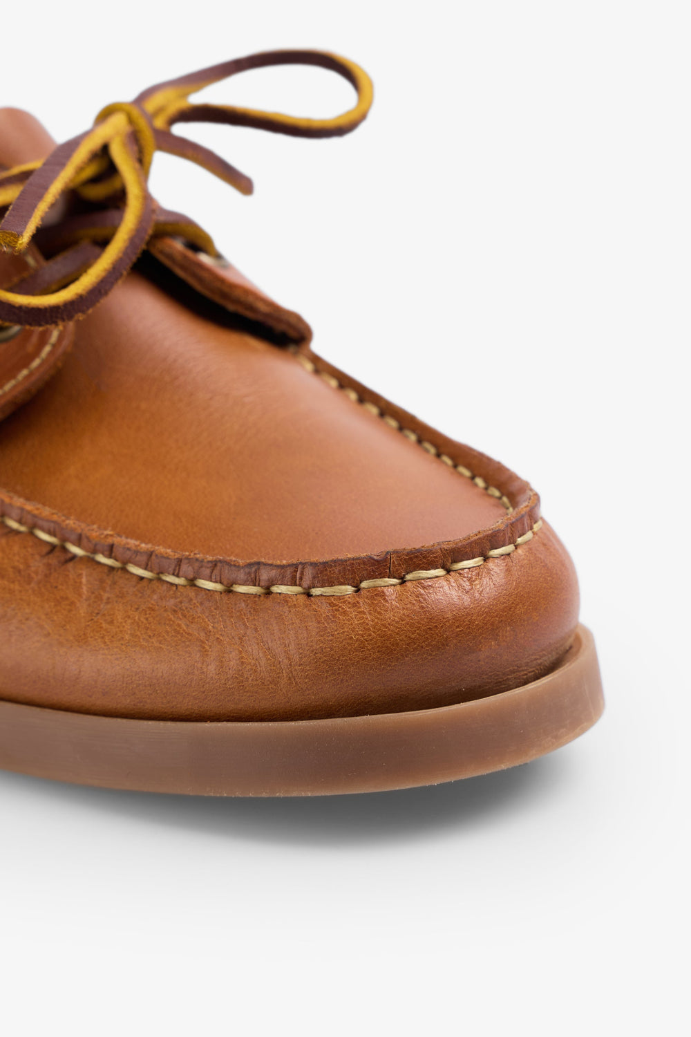 Plain-coloured deck shoes. Made of 100% leather. Matching lace-up fastening. Rubber matching sole. Logo label detail on the side