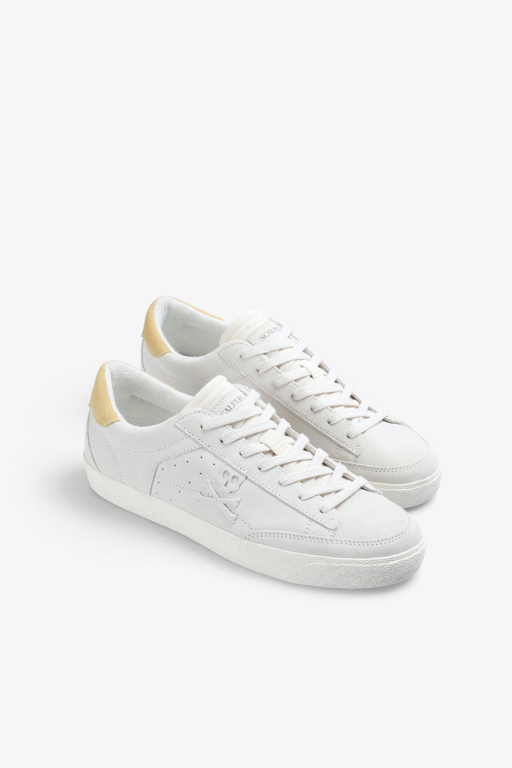 Low top sneakers with contrast side skull. Made of suede and nappa leather. Lace-up fastening. Rubber sole. Contrast heel detail.