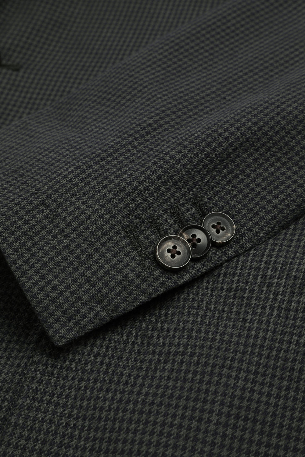 Blazer made of cotton and linen blend fabric. Slim fit, notched lapel collar, buttonhole and two-button fastening. Long sleeves with three-button cuffs and front pockets. Back vents and inner pockets.