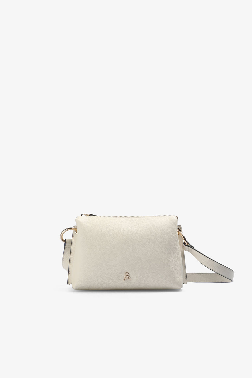 Bag made of 100% leather. Zip fastening, a long adjustable strap and a metallic skull.