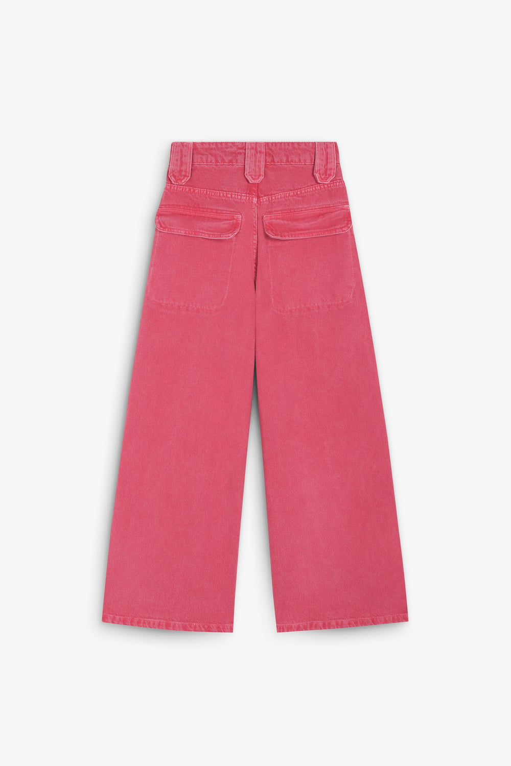 Culottes made of 100% organic BCI cotton. Two front pockets. Two back pockets with flaps. Seams detail. Faded effect. Button and zip front fastening.