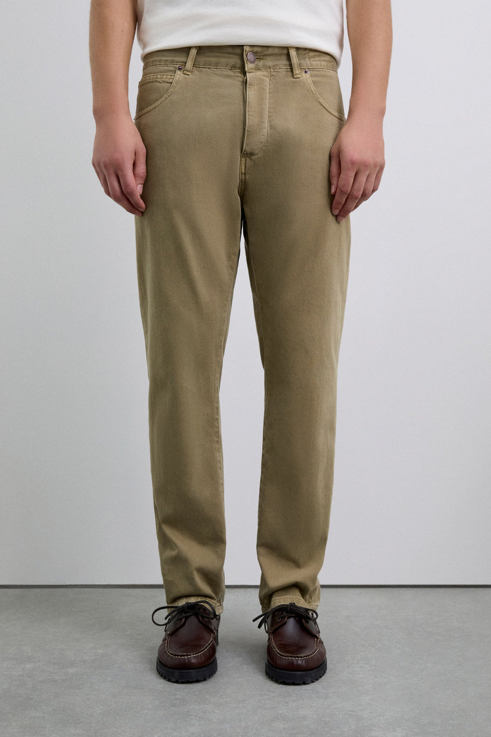 Straight trousers made of 100% cotton. Front and back pockets. Button and zip fastening. Belt loops at the waist. Logo label details on the belt and pocket.