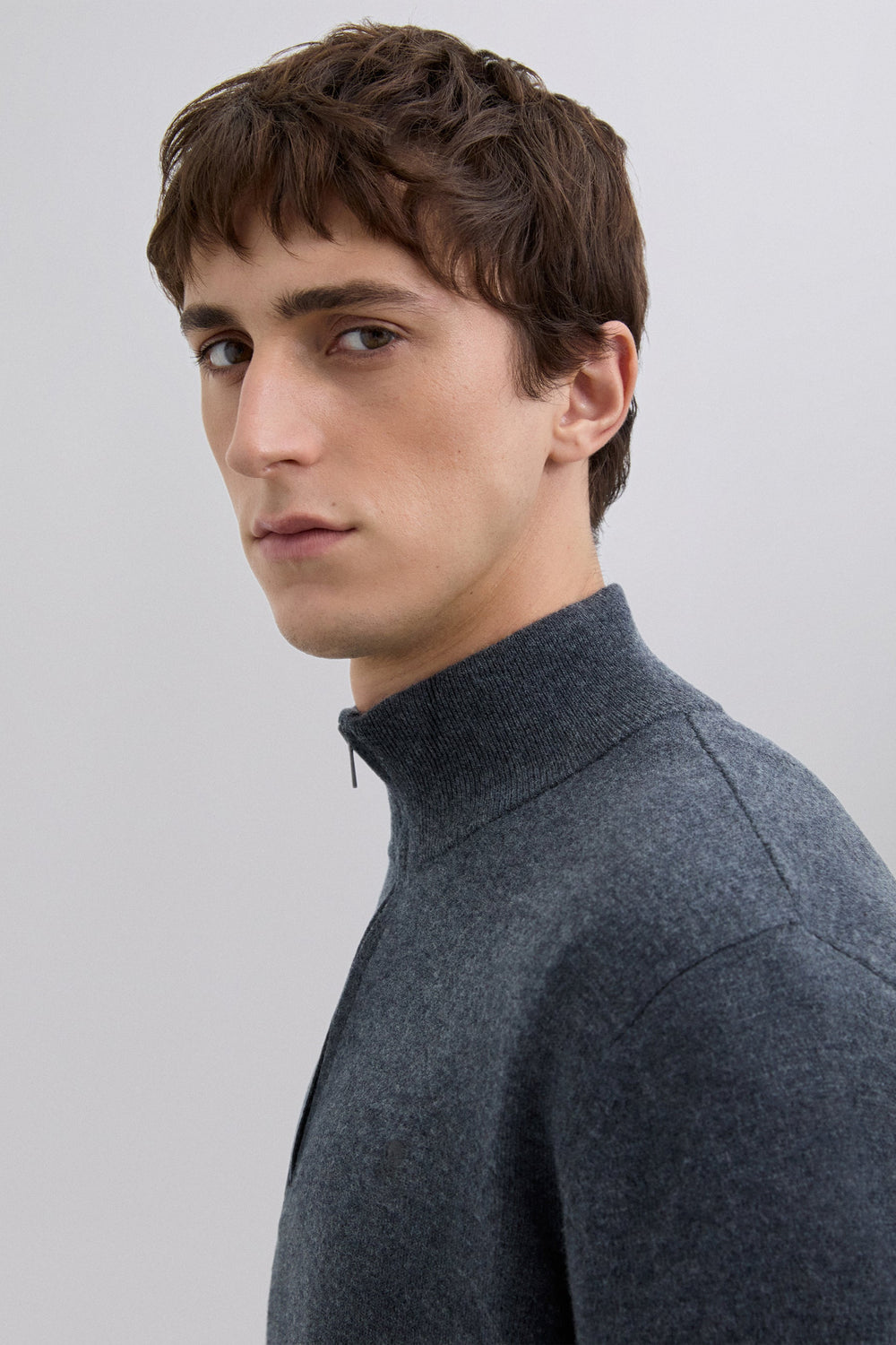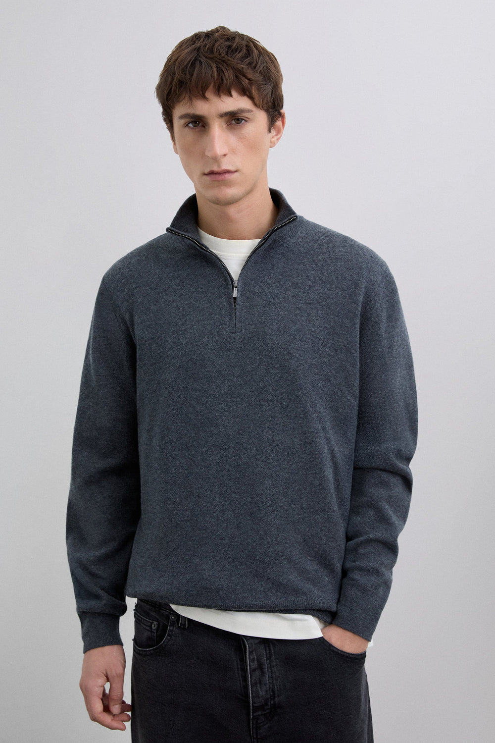 Sweater made of 100% wool. Regular Fit. Collar with half zip fastening. Long sleeves. Matching embroidered skull detail on the chest. Ribbed trim.
