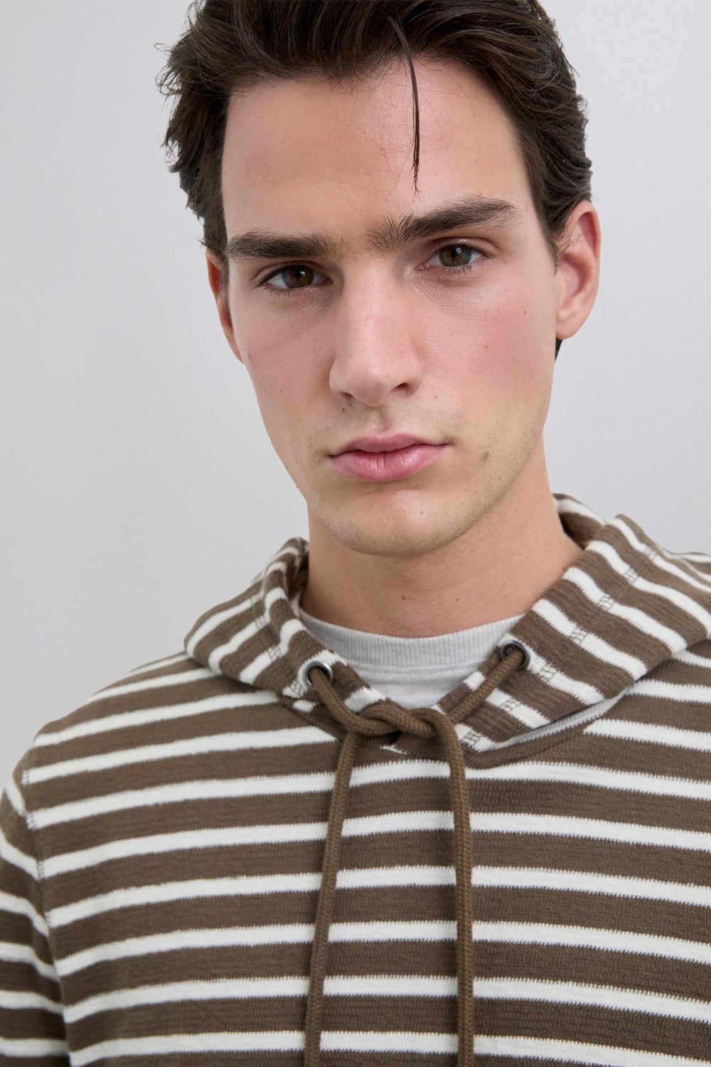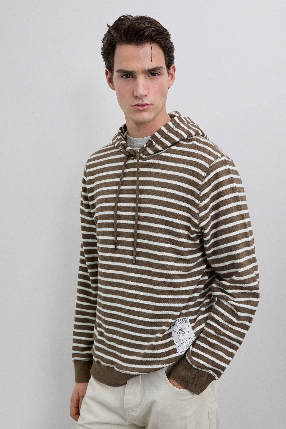 Sweatshirt made of 100% BCI cotton. Stripe print. Regular fit. Embroidered label on left side. Metal eyelets. Laces with metal tip. Ribbed cuffs and hem.