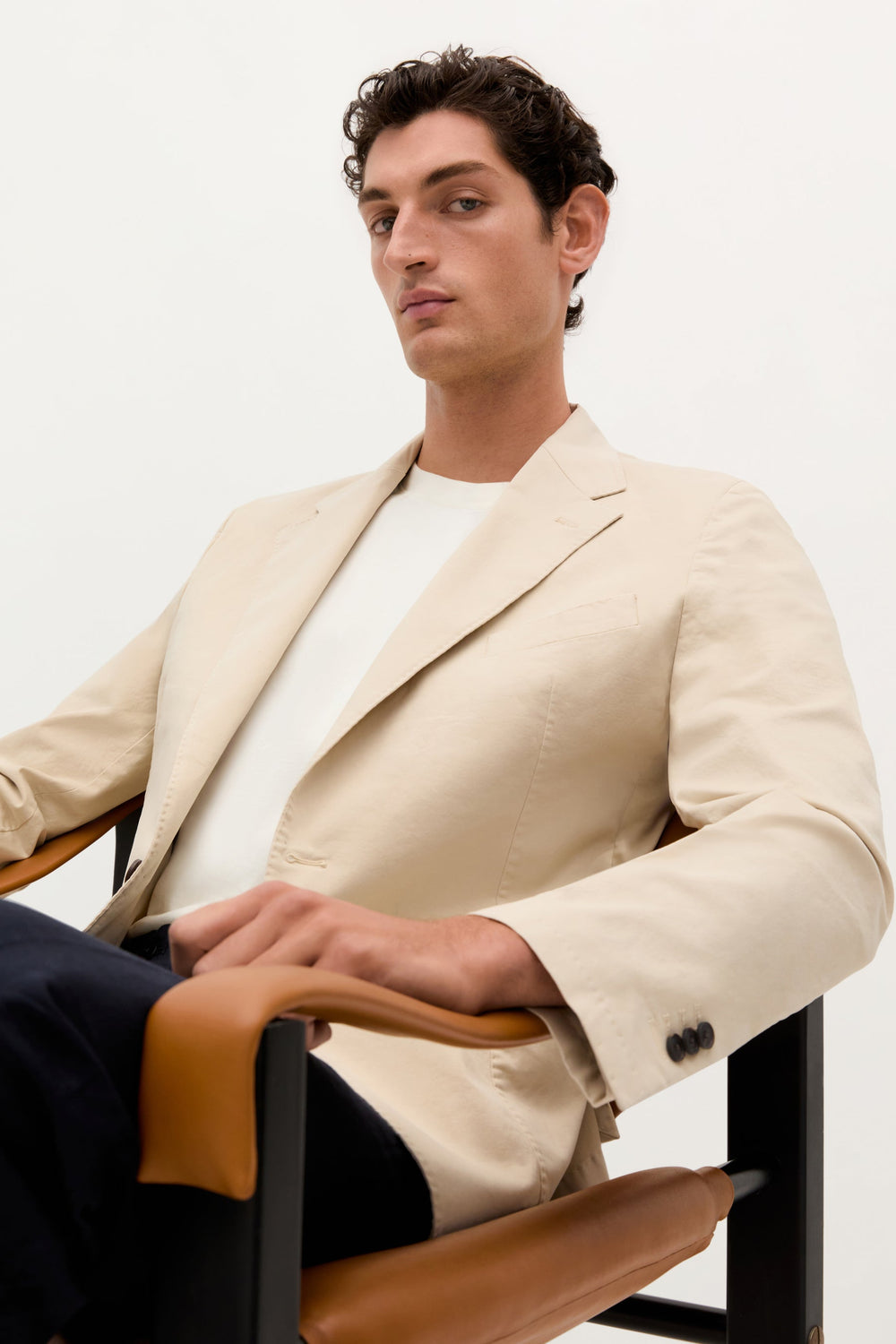 Lightweight blazer. Made of 100% cotton. Regular fit, unstructured and unlined. Notched lapel collar. Button fastening. Long sleeves with working buttons and one closed one. Patch pockets.