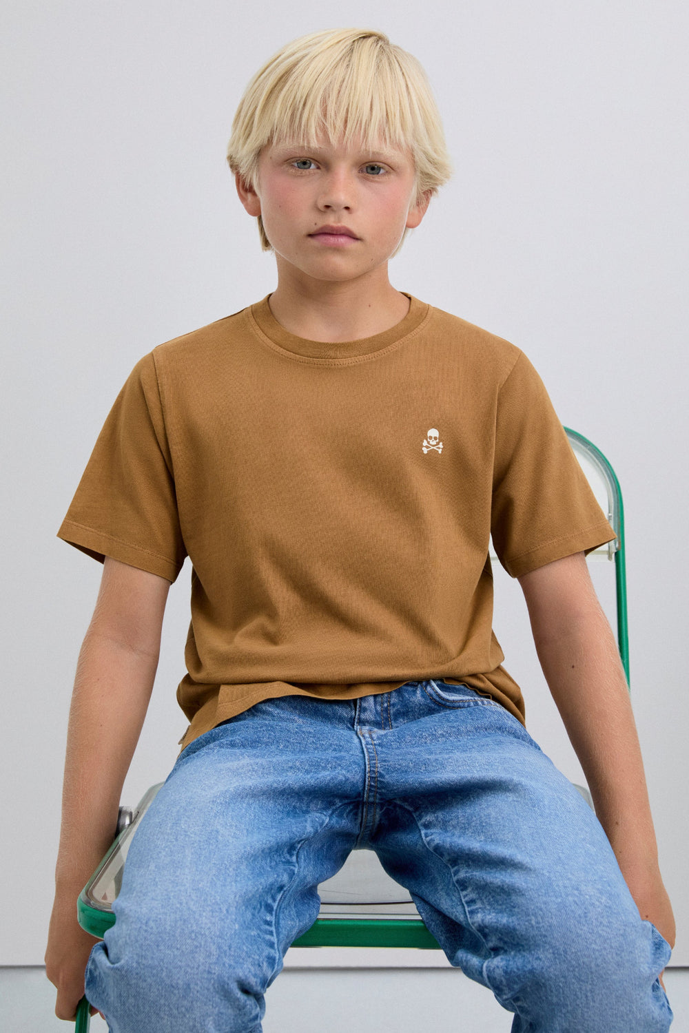 T-shirt made of 100% BCI cotton. Regular fit, short sleeves and round neck. Skull on chest and print on back.