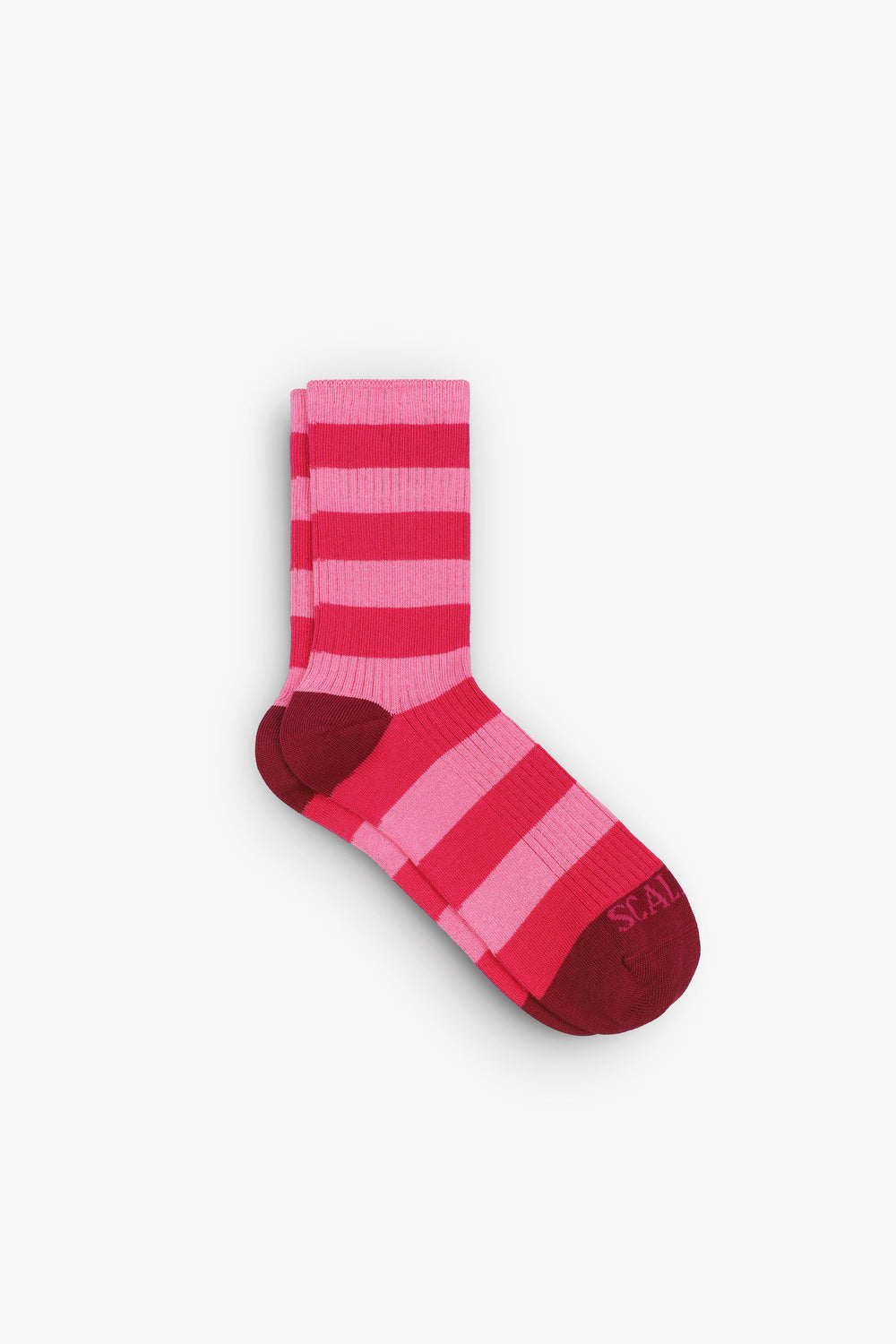 Socks made of 100% cotton. Stripe print. Contrast logo detail.