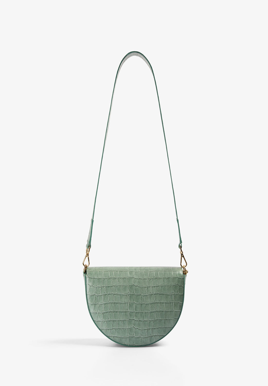 Bag made of 100% leather. Embossed finish. Split suede lining. Double strap. Inner zipped compartment. Metal skull on flap with magnetic button closure.