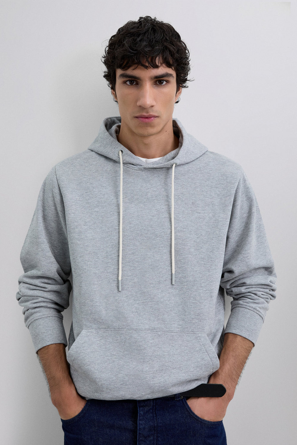 Sweatshirt made of 100% BCI cotton. Regular fit. Collar with adjustable hood. Long sleeves. Pouch pocket Ribbed trim on waistband and cuffs.