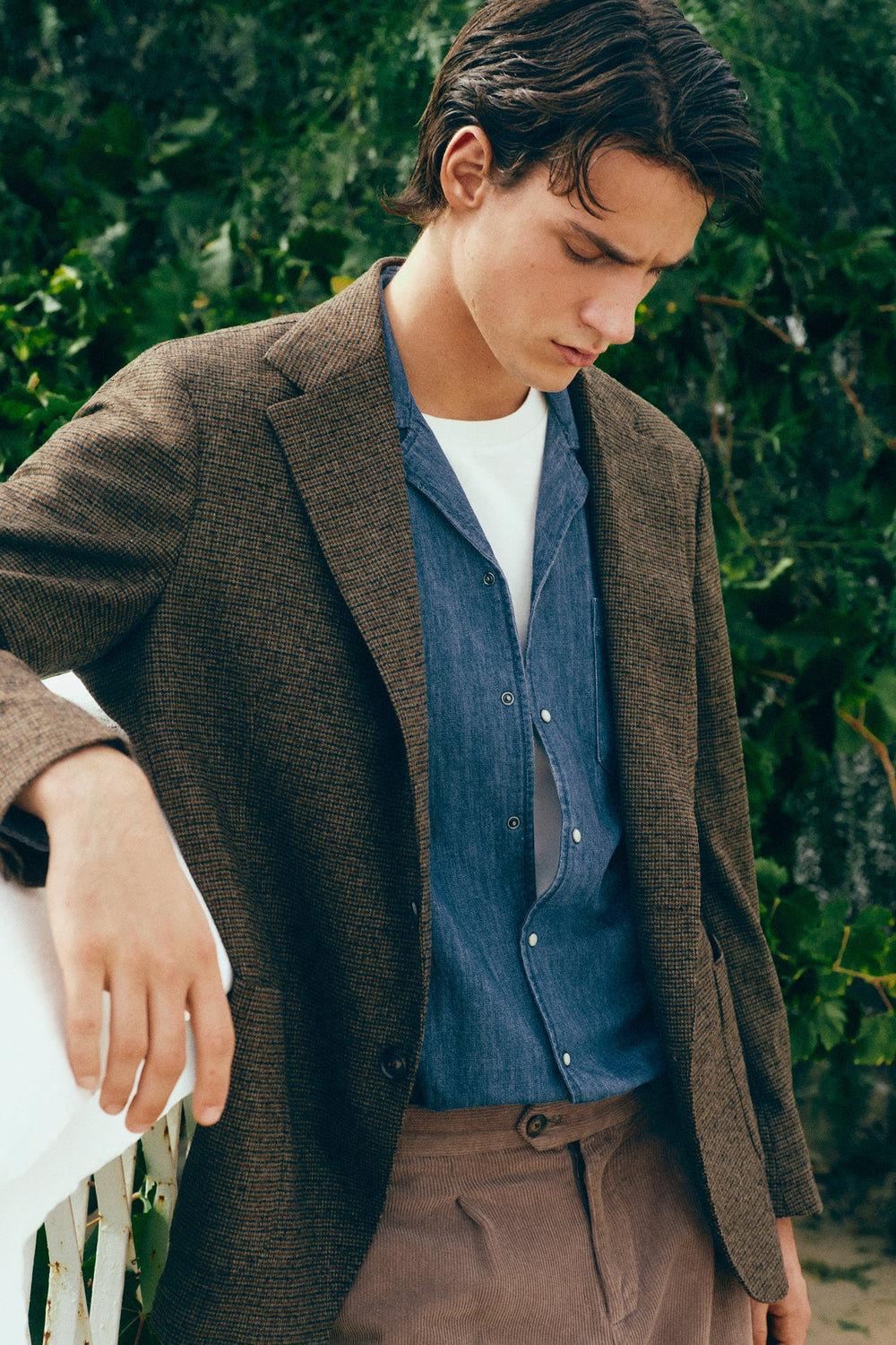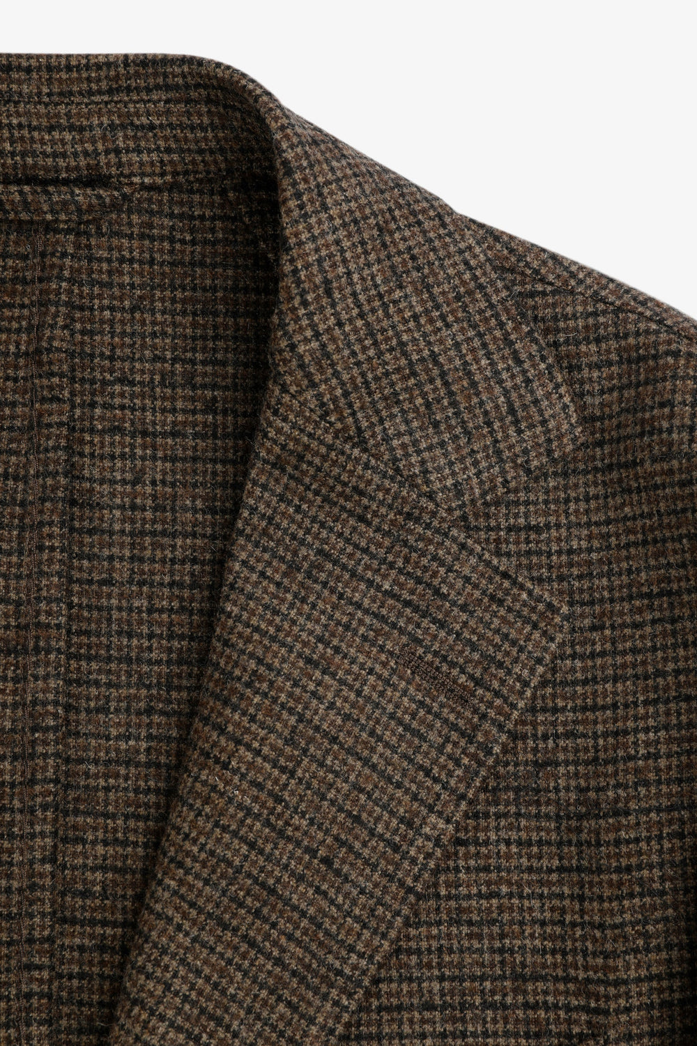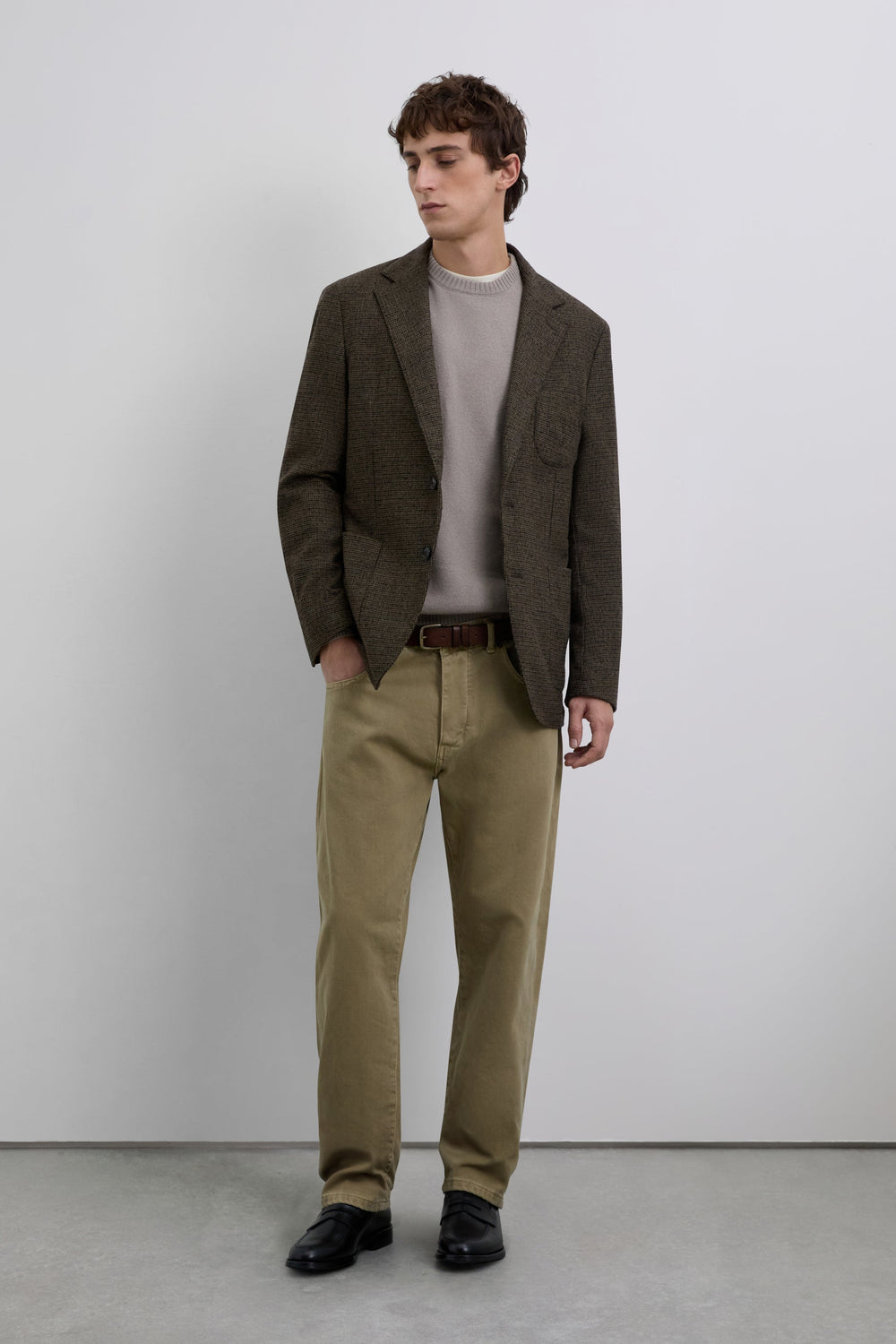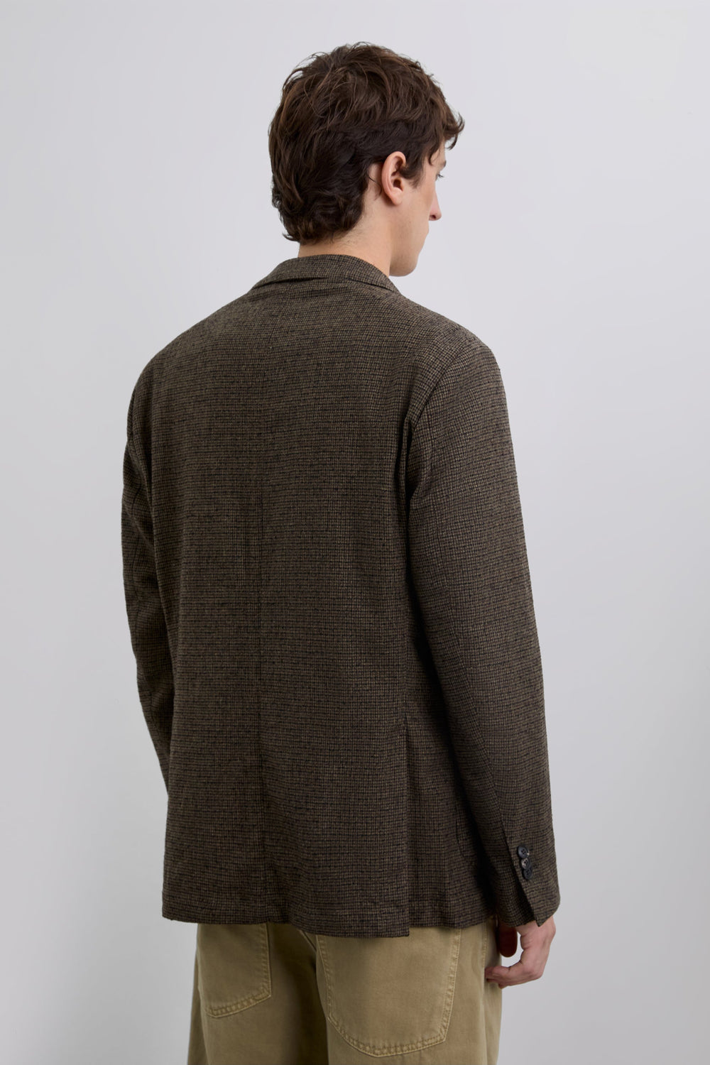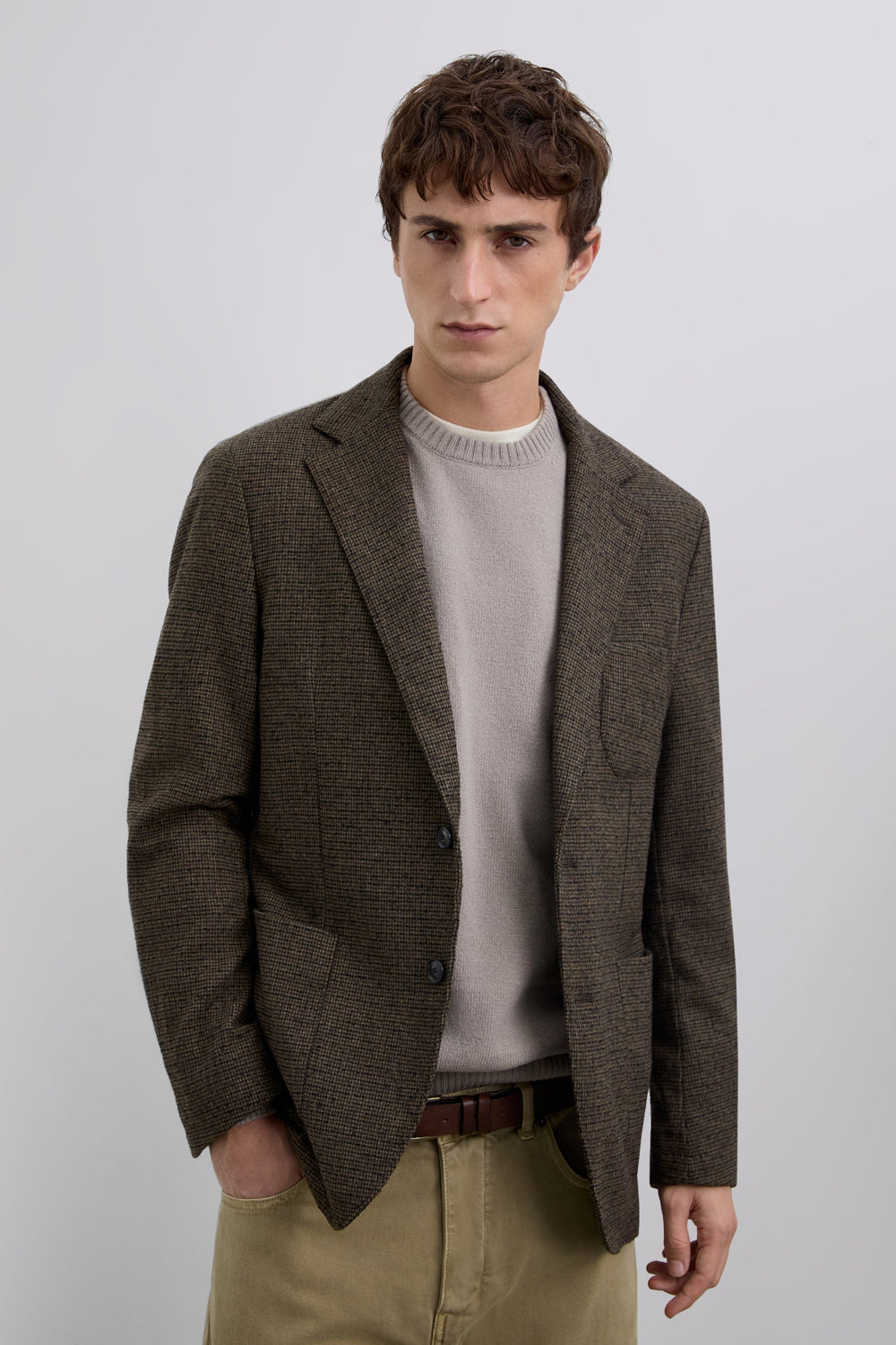 Checked blazer made of wool. Regular lapels. Three patch pockets. Two button fastening at the front. Long sleeves.