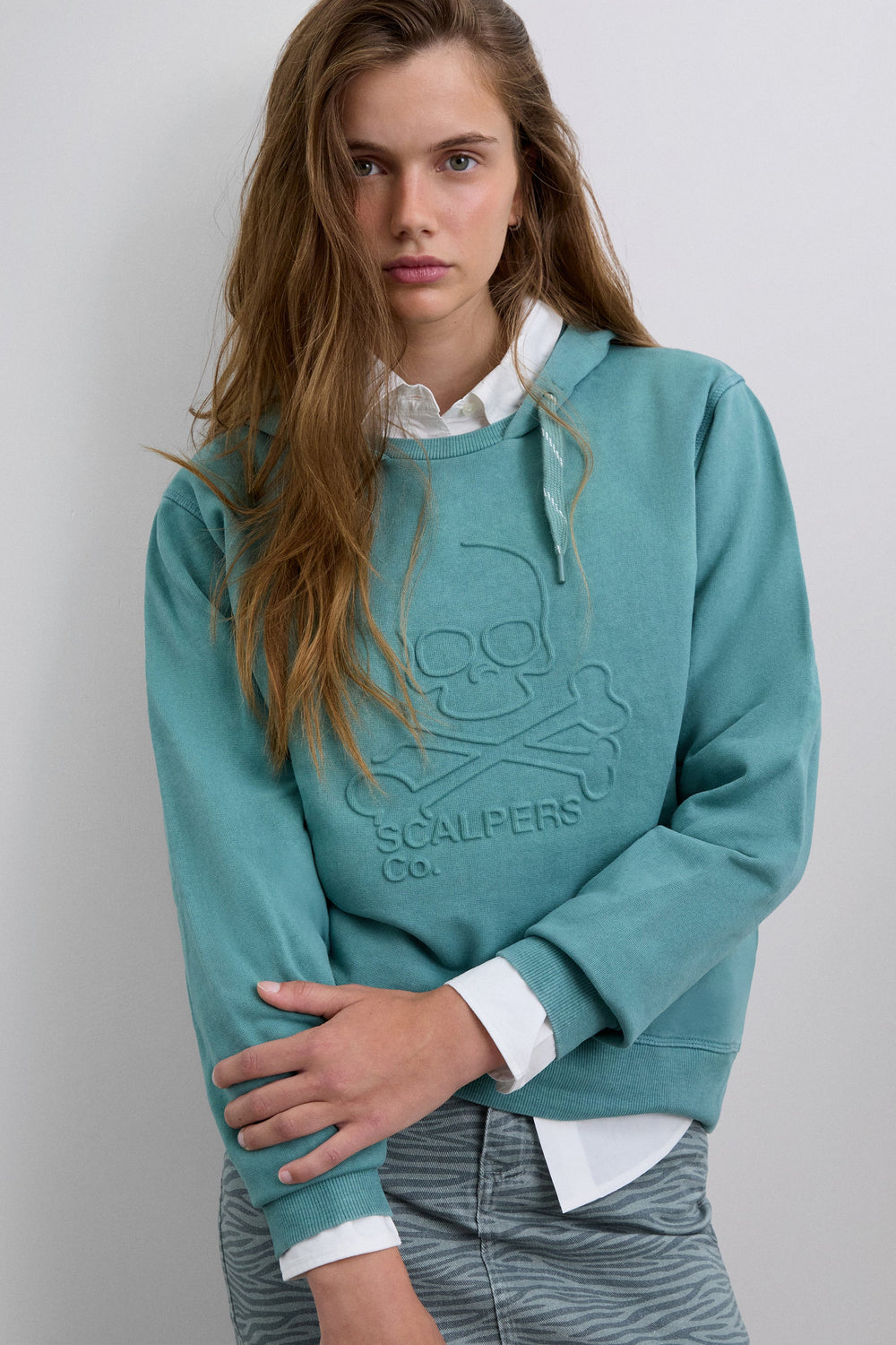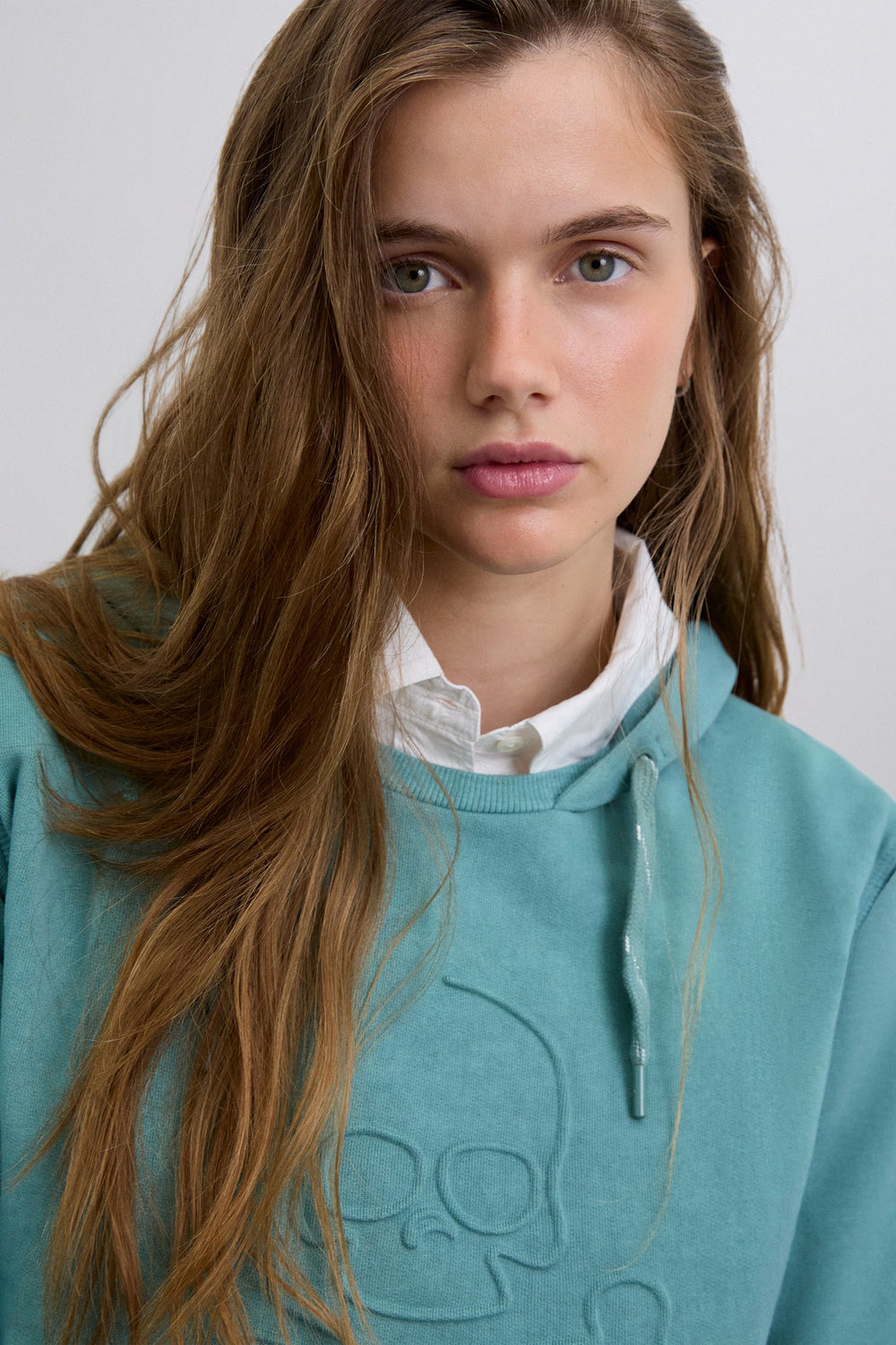 Sweatshirt with adjustable hood made of 100% BCI cotton. Regular fit. Long sleeves and round neck. Matching skull print on the front. Ribbed trim.